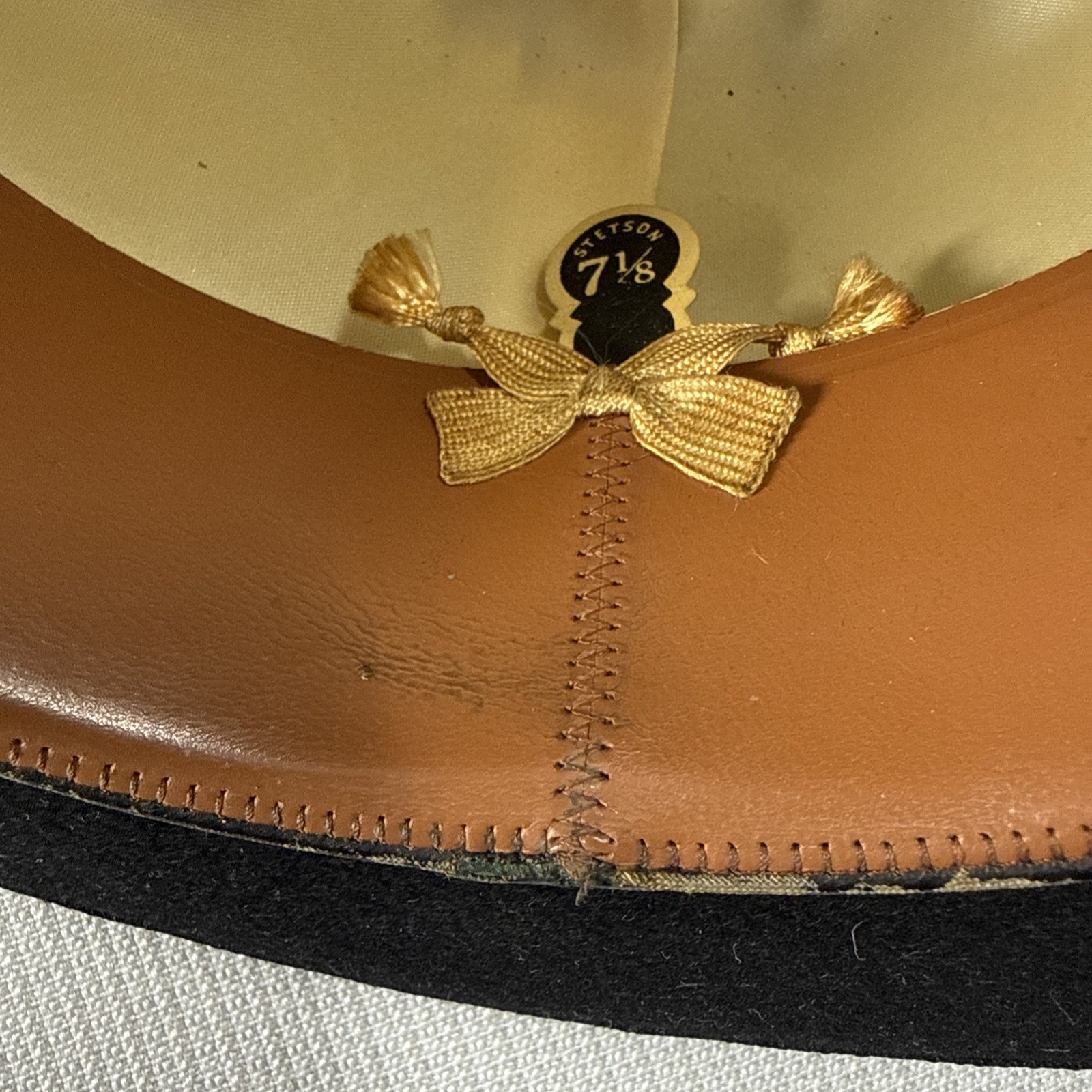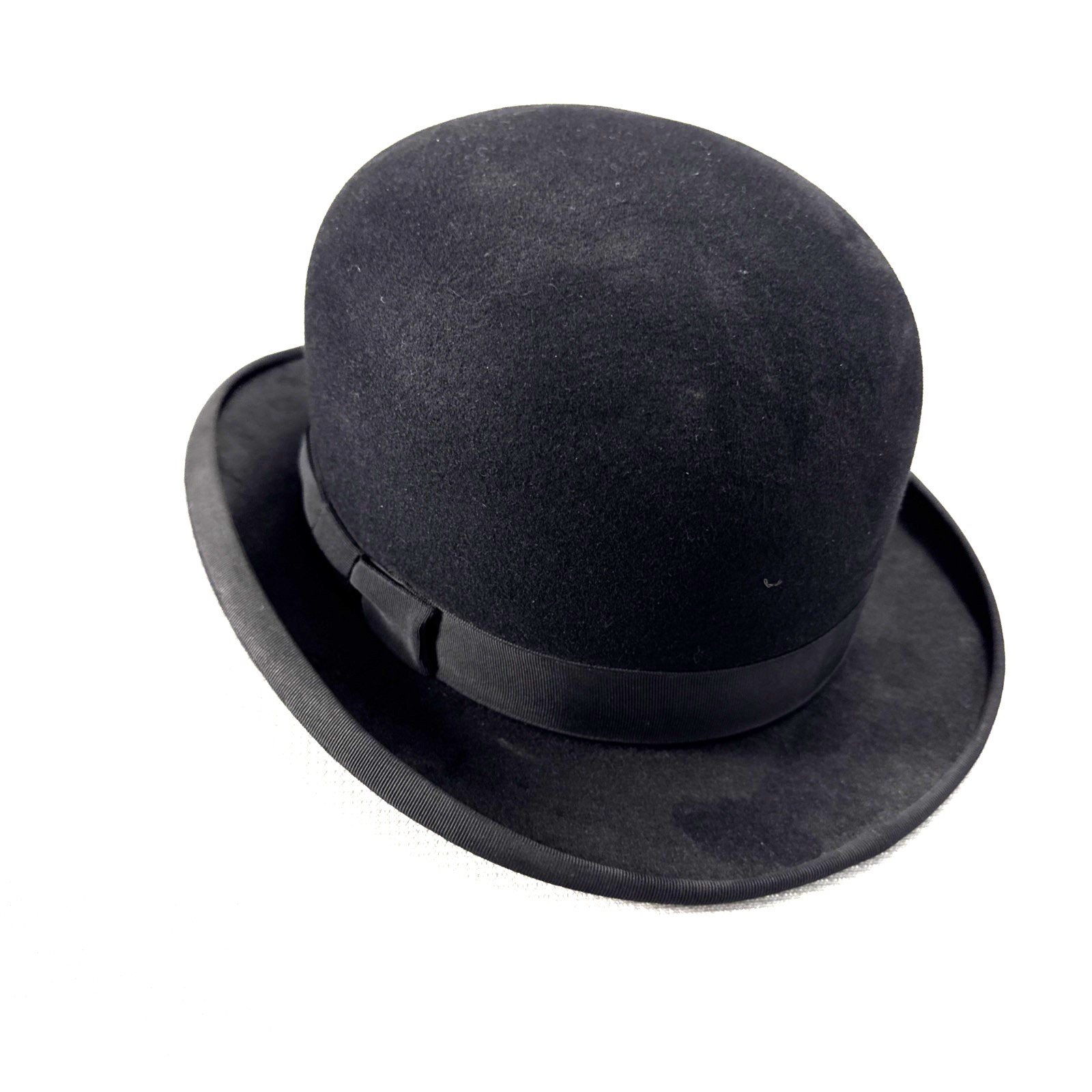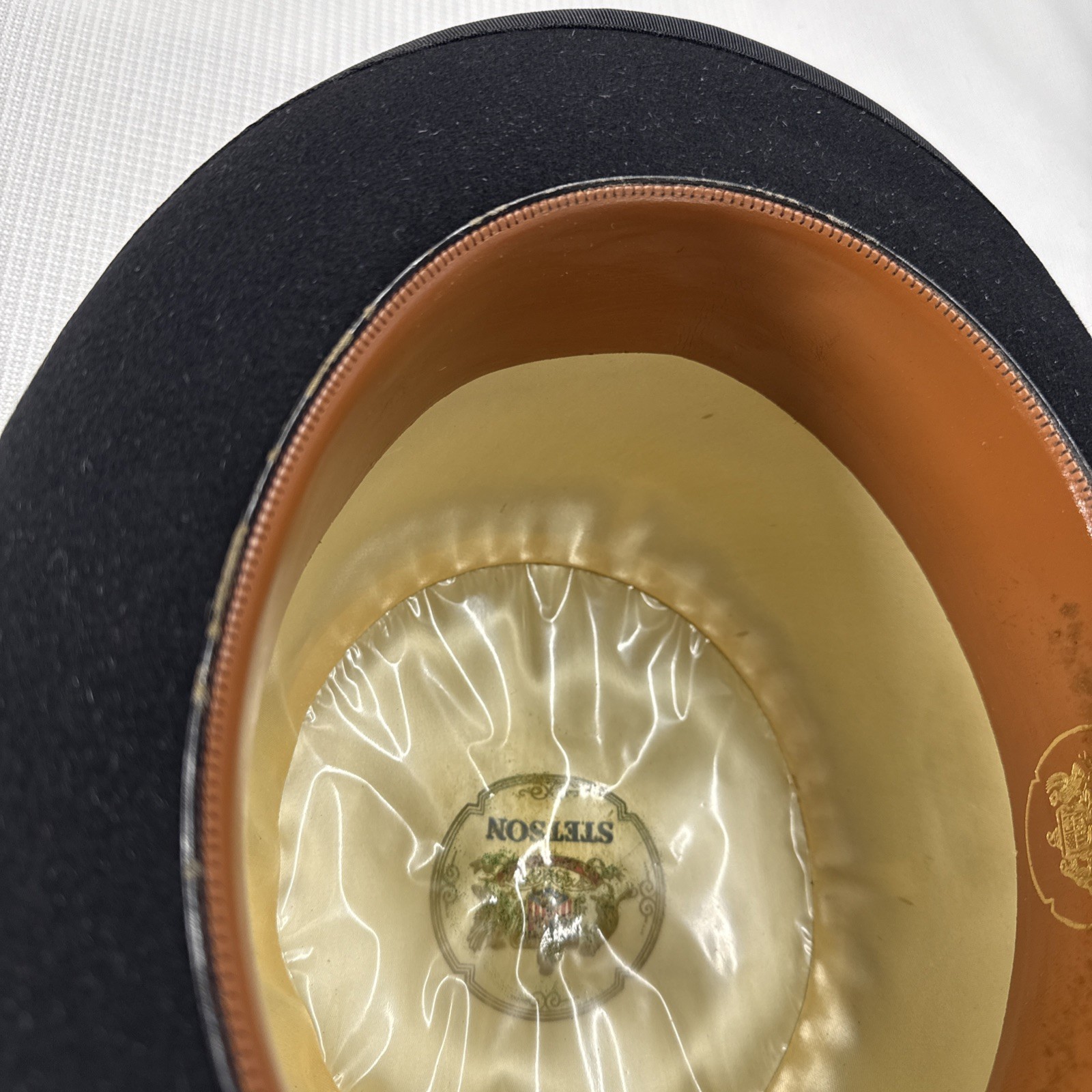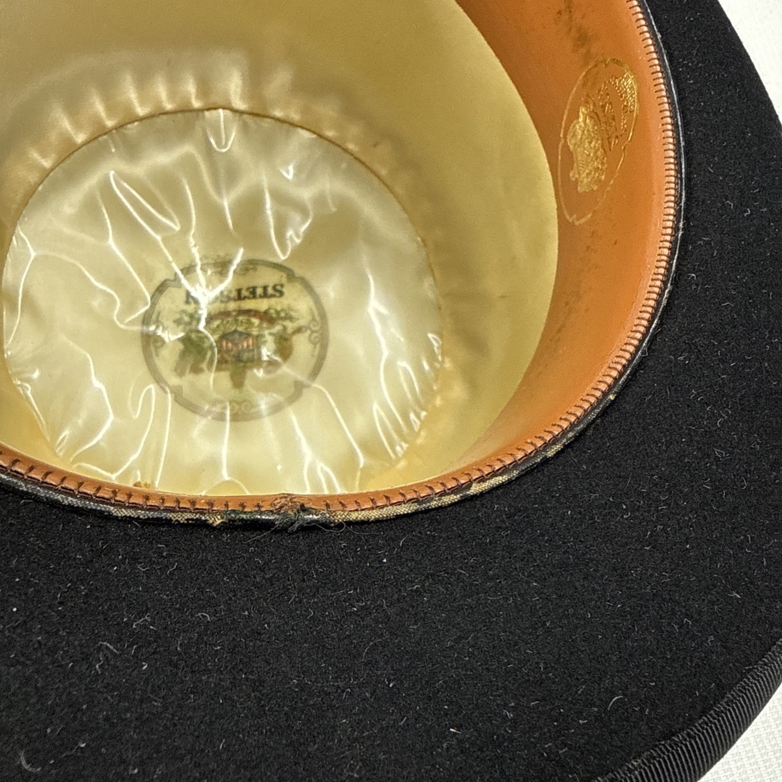 Vintage John B. Stetson Black Felt Derby Bowler Hat Stiff Fur Felt Satin Lined