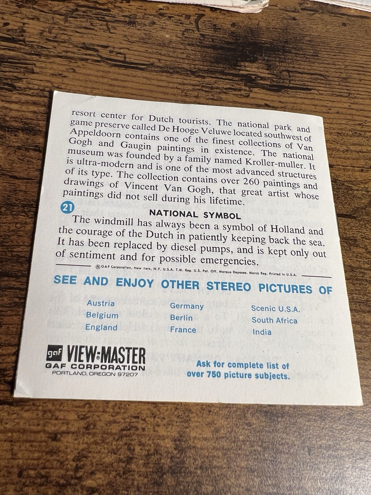 • View Master Set - Holland- Nations Of The World Series w/Inserts B190 Bonus