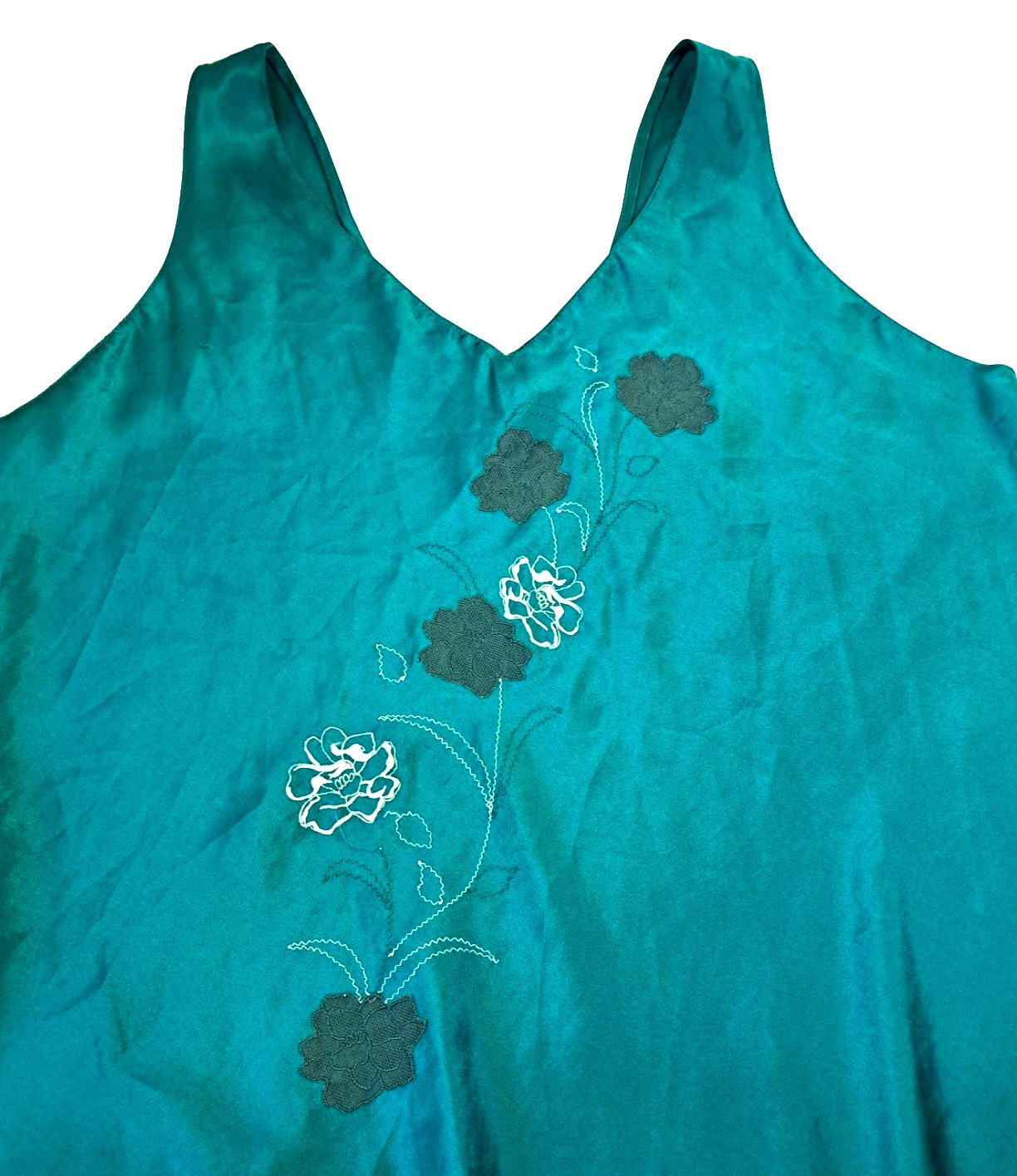 Enchanting Teal Slip Dress Nightgown Lingerie Women's L Satin Coquette Feminine