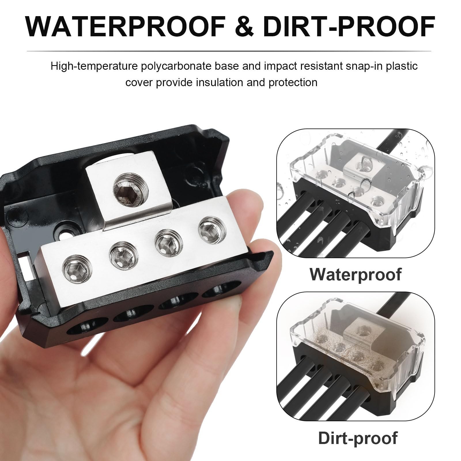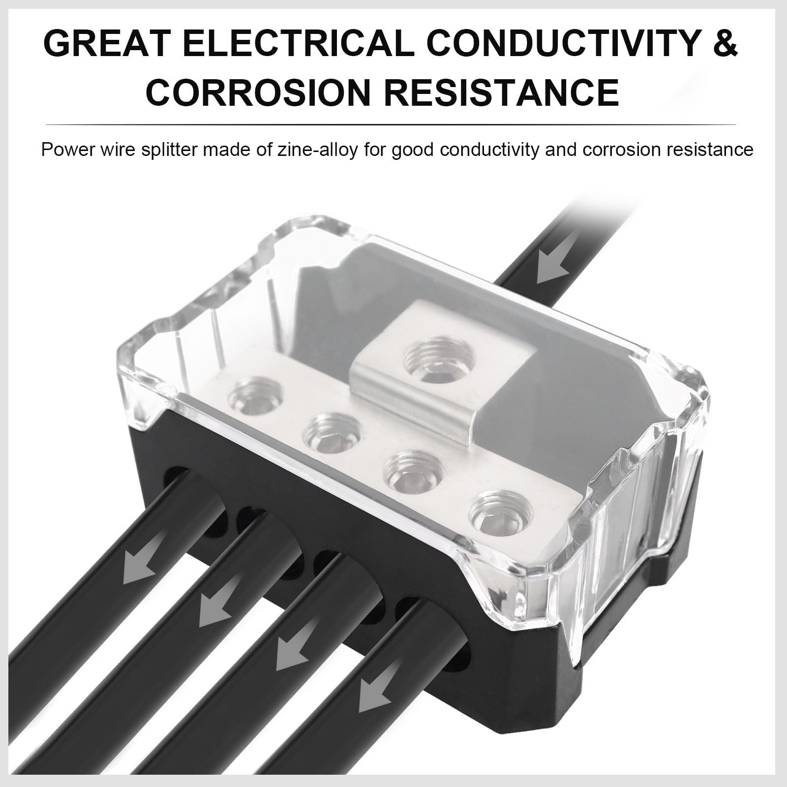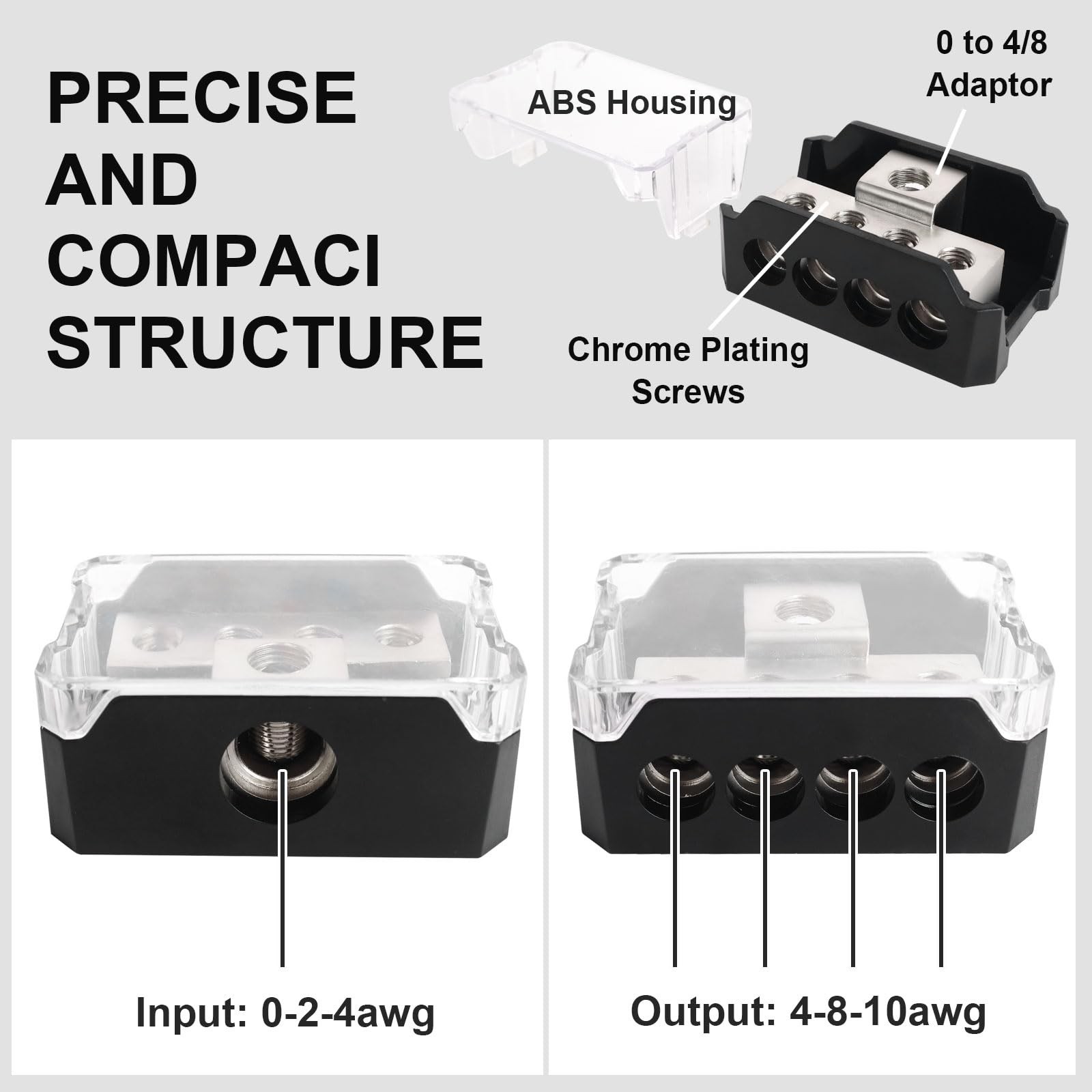 4 Way Power Distribution Block Car Audio Splitter 1x 0 Gauge Input / 3X 4 Gau...