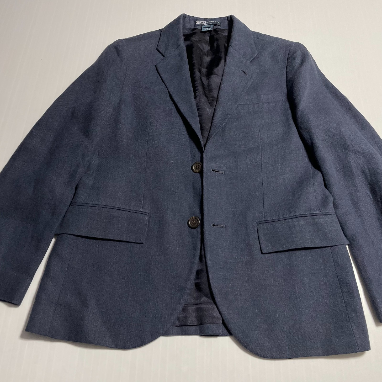 как выглядит Polo Ralph Lauren Boys Blazer Sport Coat Italy Blue Linen Sz 14 фото