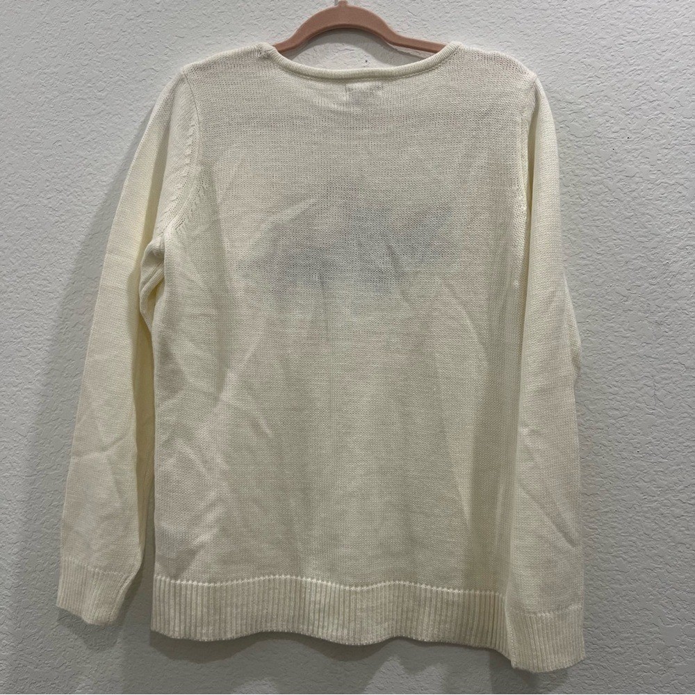 как выглядит Knits Pullovers Croft Barrow Ivory Embroidered Sequin Cardinal Sweater Size L фото