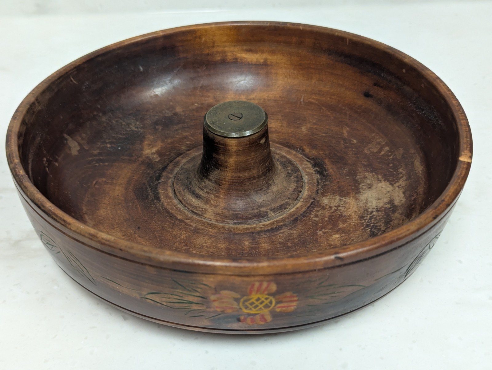 Vintage Wooden Nut Bowl with Floral Design Brass Accent for Cracking Nuts