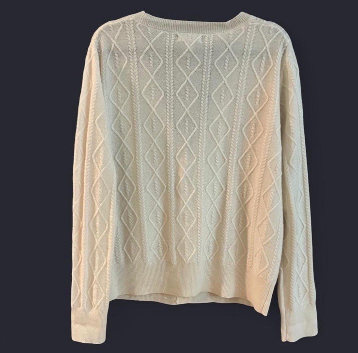 Philosophy Cashmere Preppy Minimalist Retro Women's Cream Cardigan Sweater S