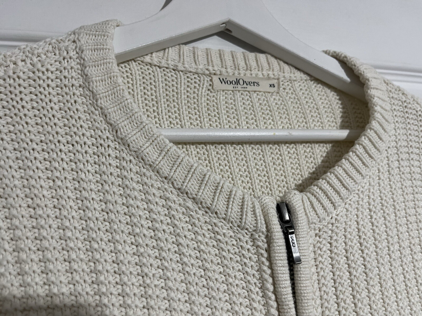 Woolovers Zip Up Cardigan Sweater Round Neck Cotton Knit Womens Size XS Cream