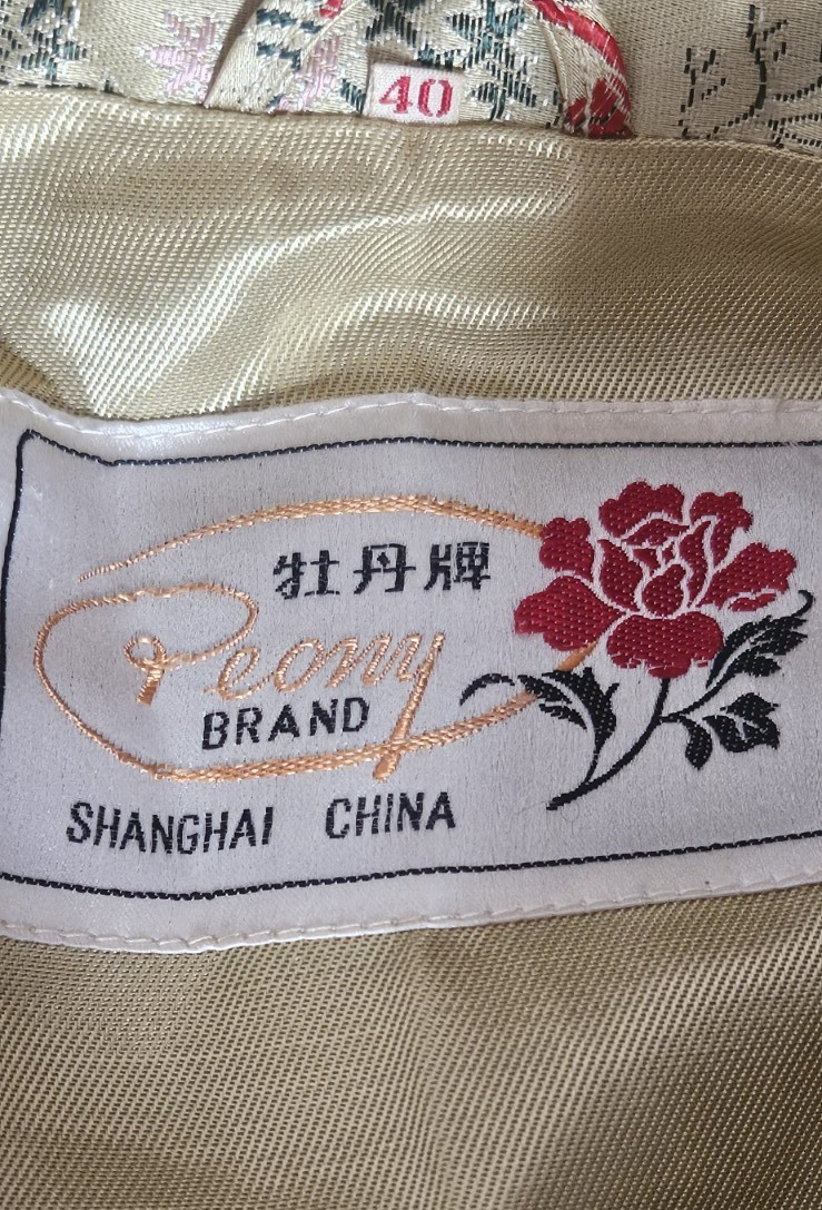 Vintage Peony Shanghai China gold satin Kimono robe dress jacket Sz 40 S/M