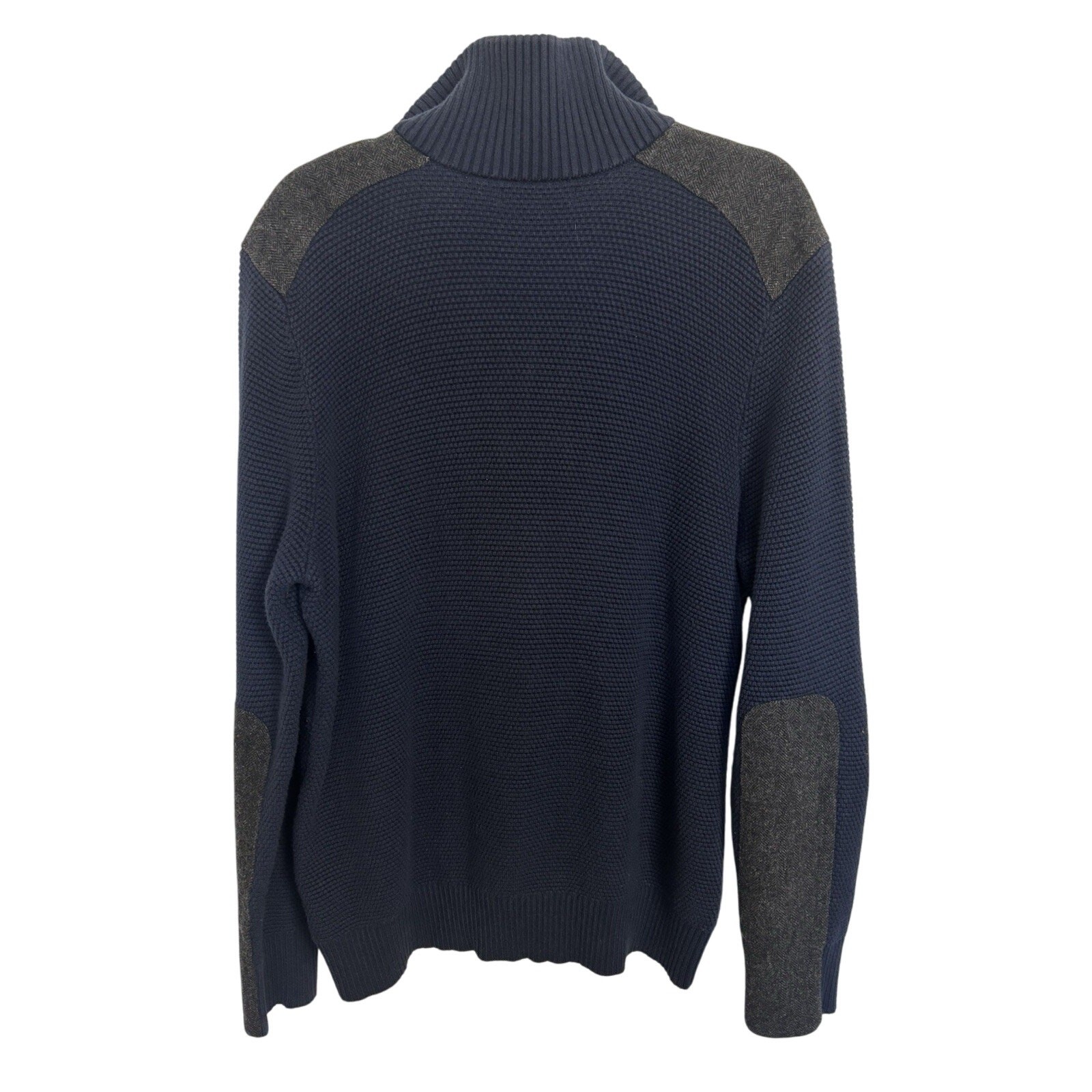 Banana Republic Quarter Zip Pullover Sweater Wool Patches Size XL Navy Blue