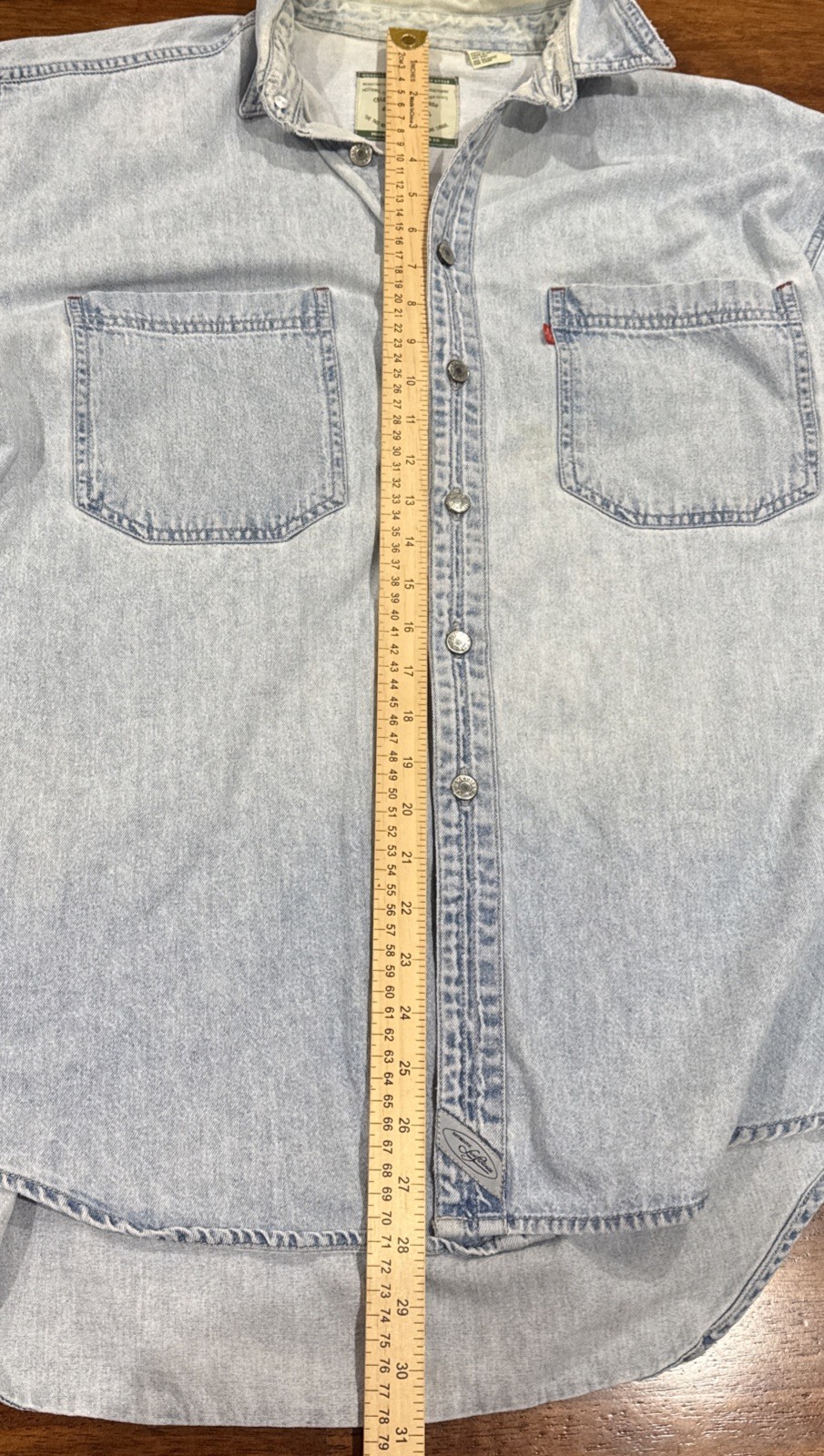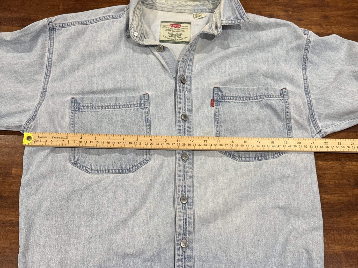 как выглядит Levi s Vintage Light Washed Denim Mens Button Down Long Sleeve Shirt Very Distr фото