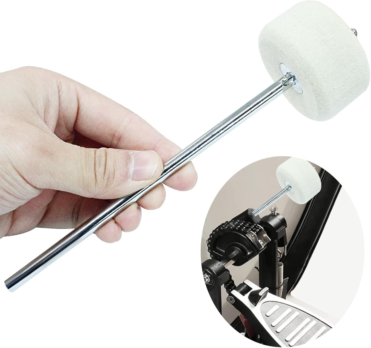Professional Quality Dual-Sided Kick Drum Beater with White Felt Mallet - 1 Pack