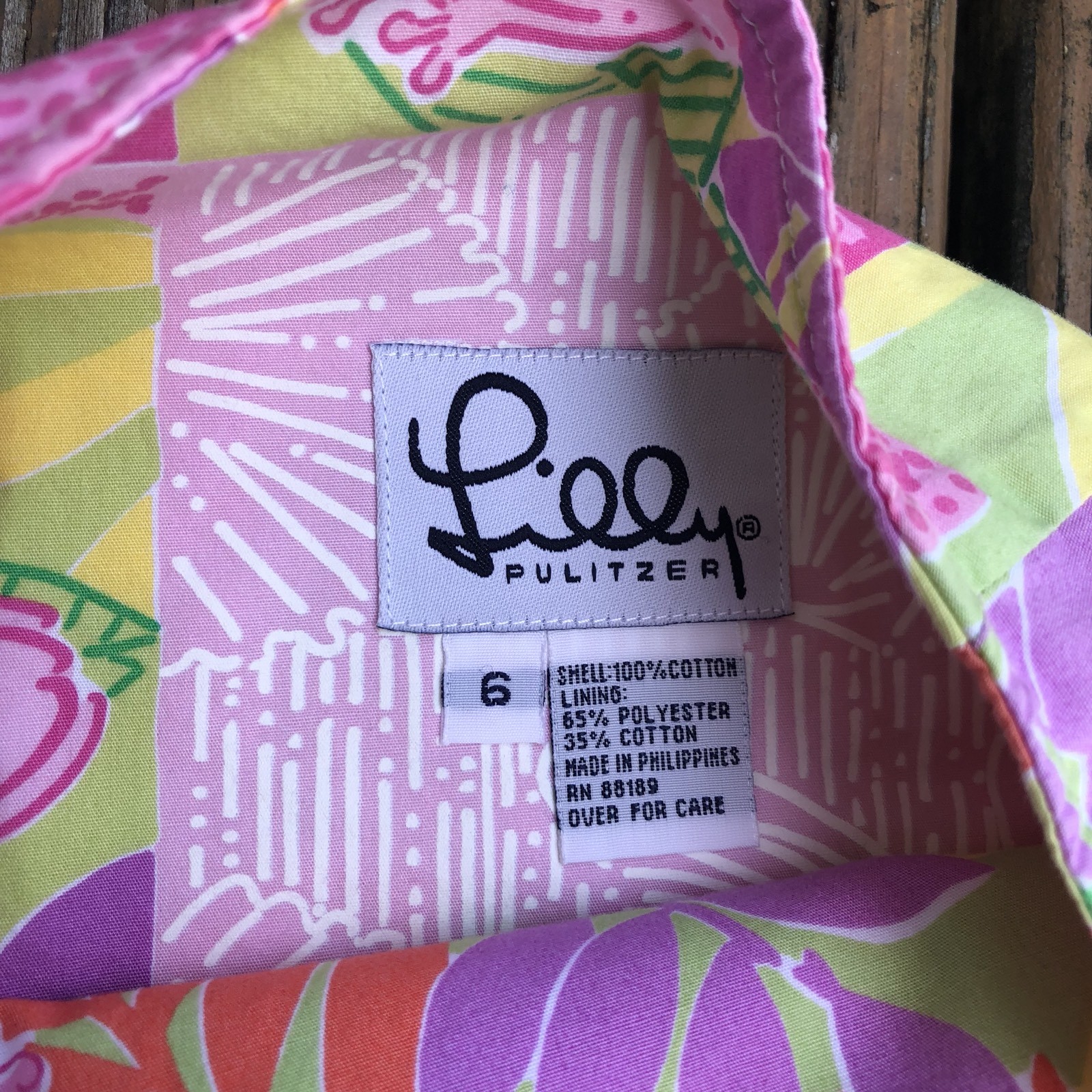 как выглядит Lilly Pulitzer Frog Patch Reversible Wrap Skirt 6 Pink Green White Label Tag Vtg фото