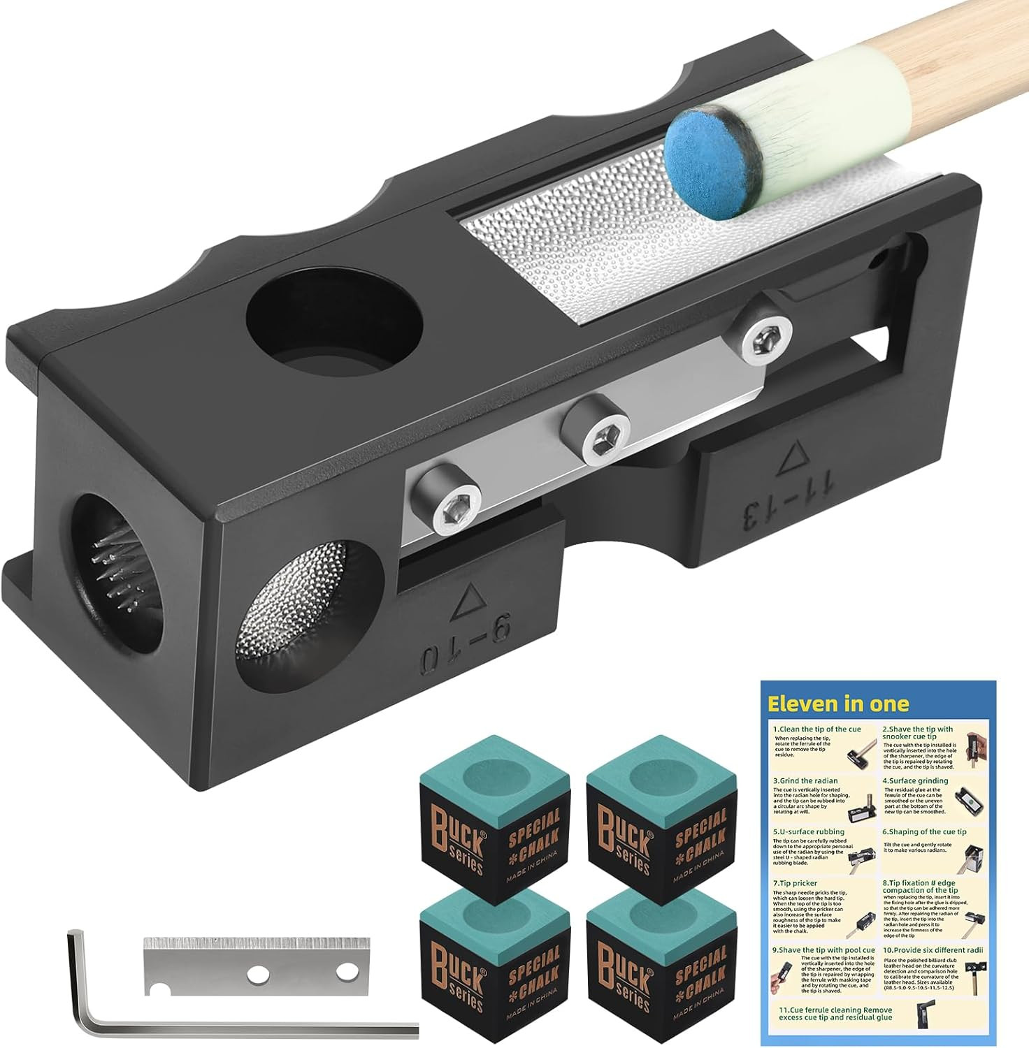11-In-1 Billiards Pool Cue Tip Shaper and Repair Tool Kit, Cue Tips Replacement