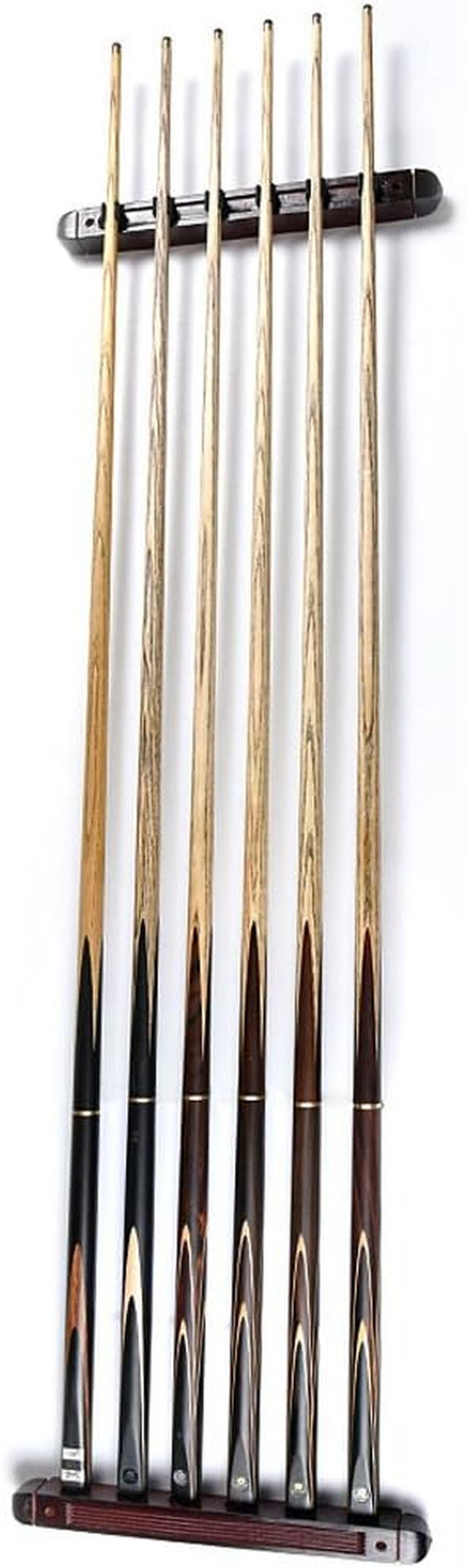 Pool Stick Holder, Wall Mounted 6 Cue Billiard Rack - Premium Solid Wood Cue Acc