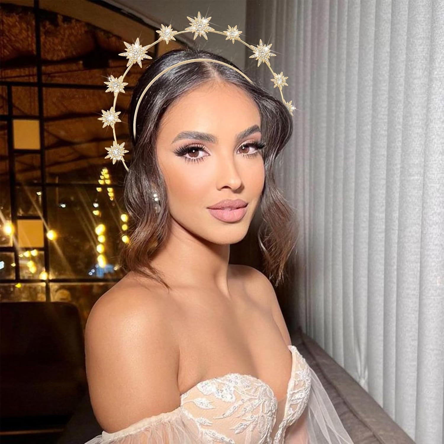 Halo Crown Stars Rhinestone Crown Headbands Goddess Headpiece Crystal Halo Headb