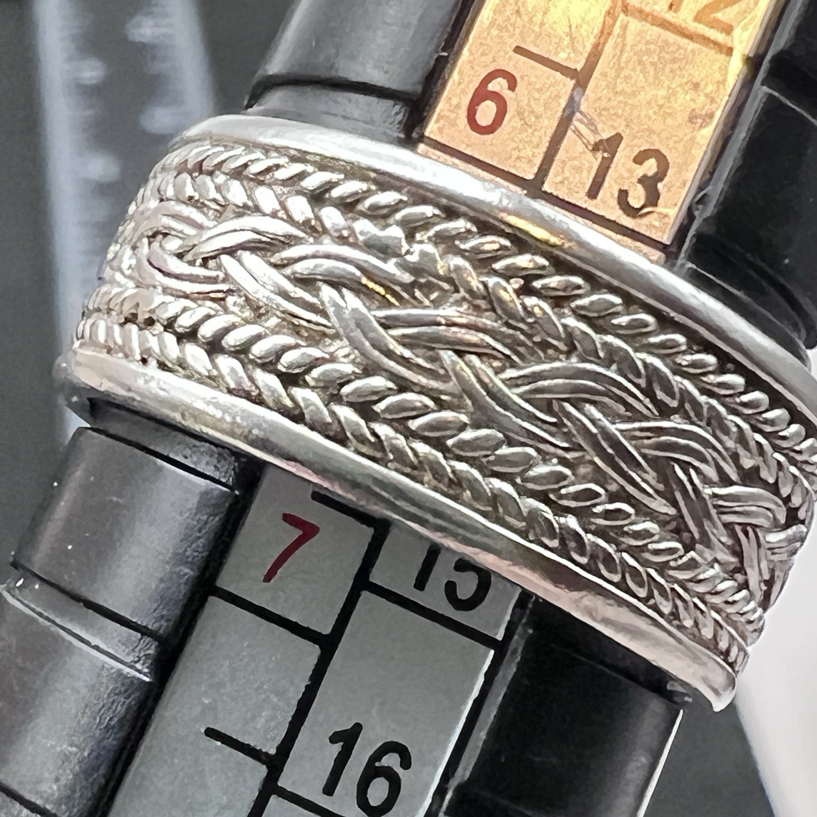 как выглядит Vintage Sterling Silver Wide Band Ring Braided Rope Woven Size 6.5 фото