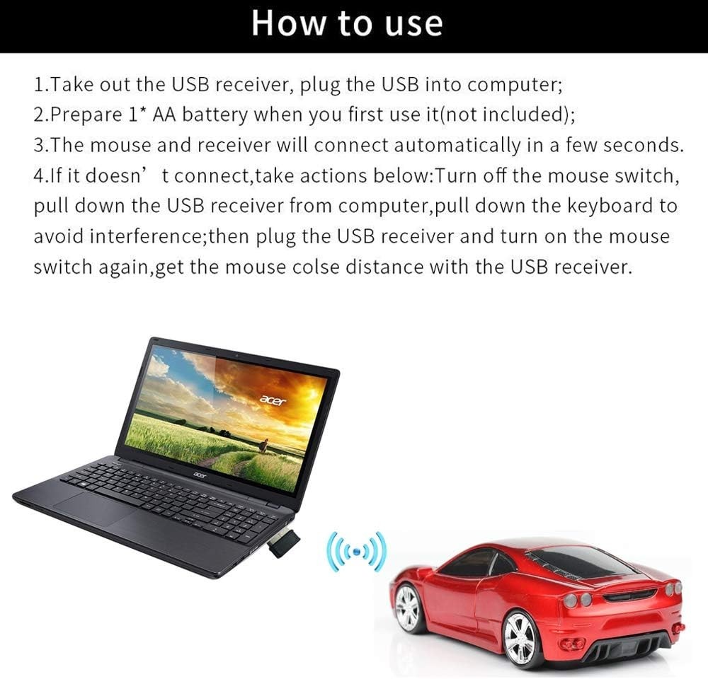 как выглядит Stylish Wireless Car-Themed Optical Mouse with 2.4G Connectivity Auto Sleep фото
