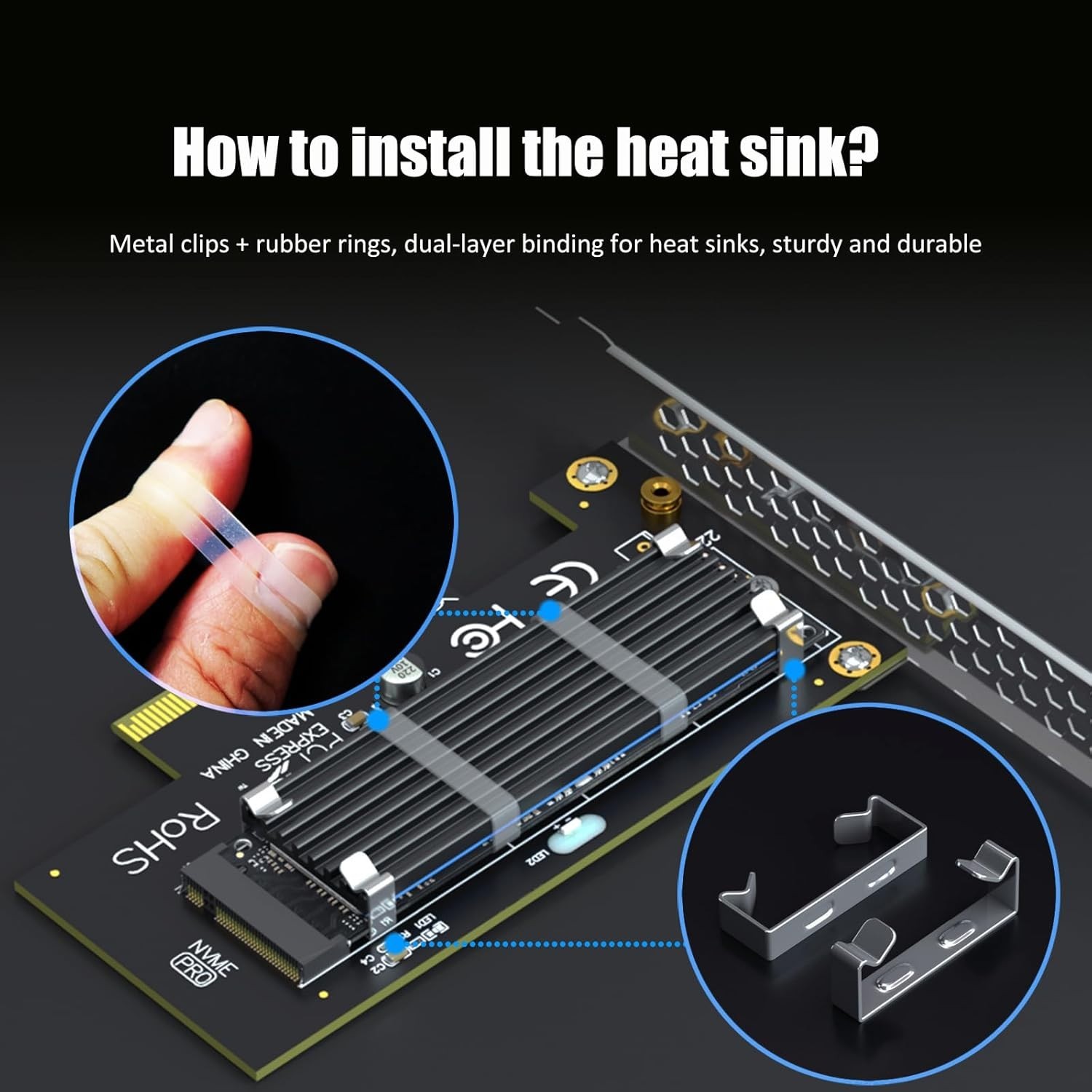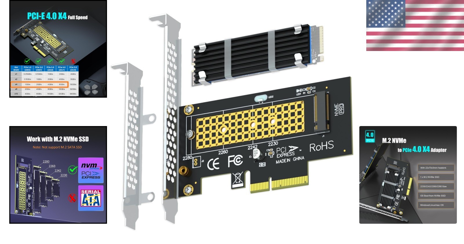 Особенности: Heatsink, Cooling, Supports M.2 NVMe SSDs, PCIE speed support, No capacity limit for SSD, Multi-size support, OS compatibility, Lifetime tech support