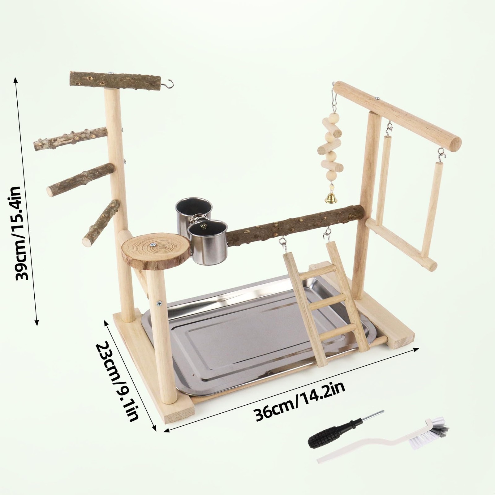 Small Bird Playground Parakeet, Natural Wood Bird Play Stand Toys Perch with ...