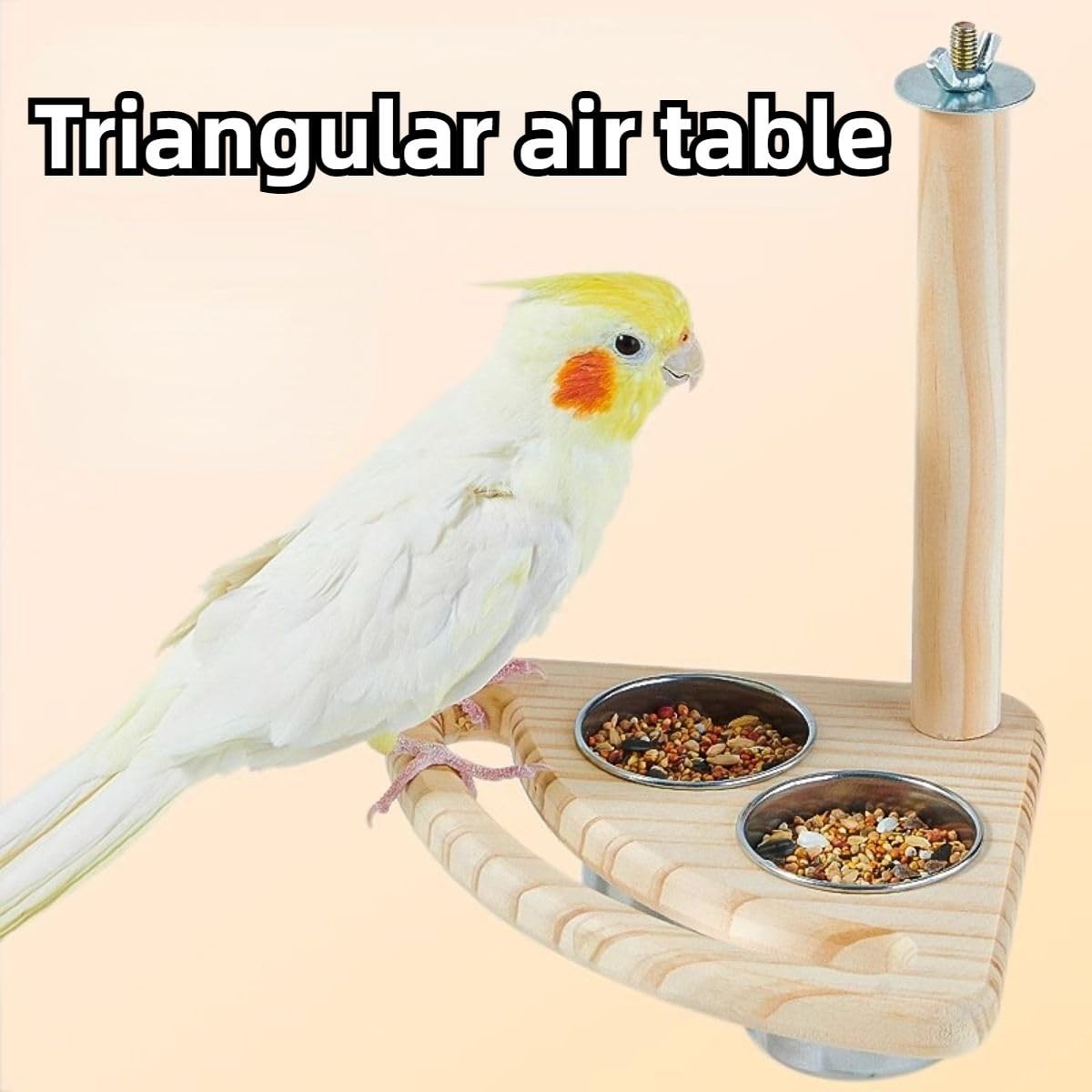 Bird Perch, Parrot Platform Wood Stand with Feeding Bowl Cups Bird Toys Parro...