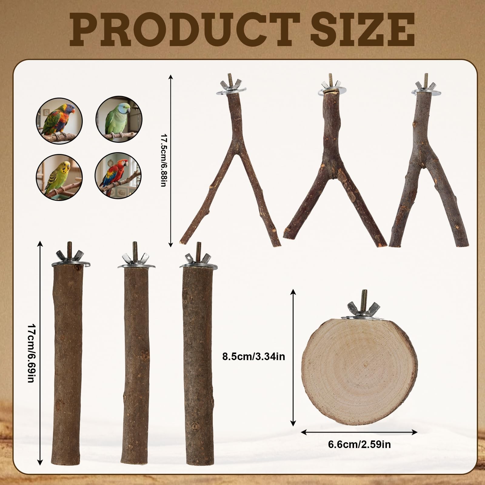 Included Components: 8 Pcs Bird Perch Set