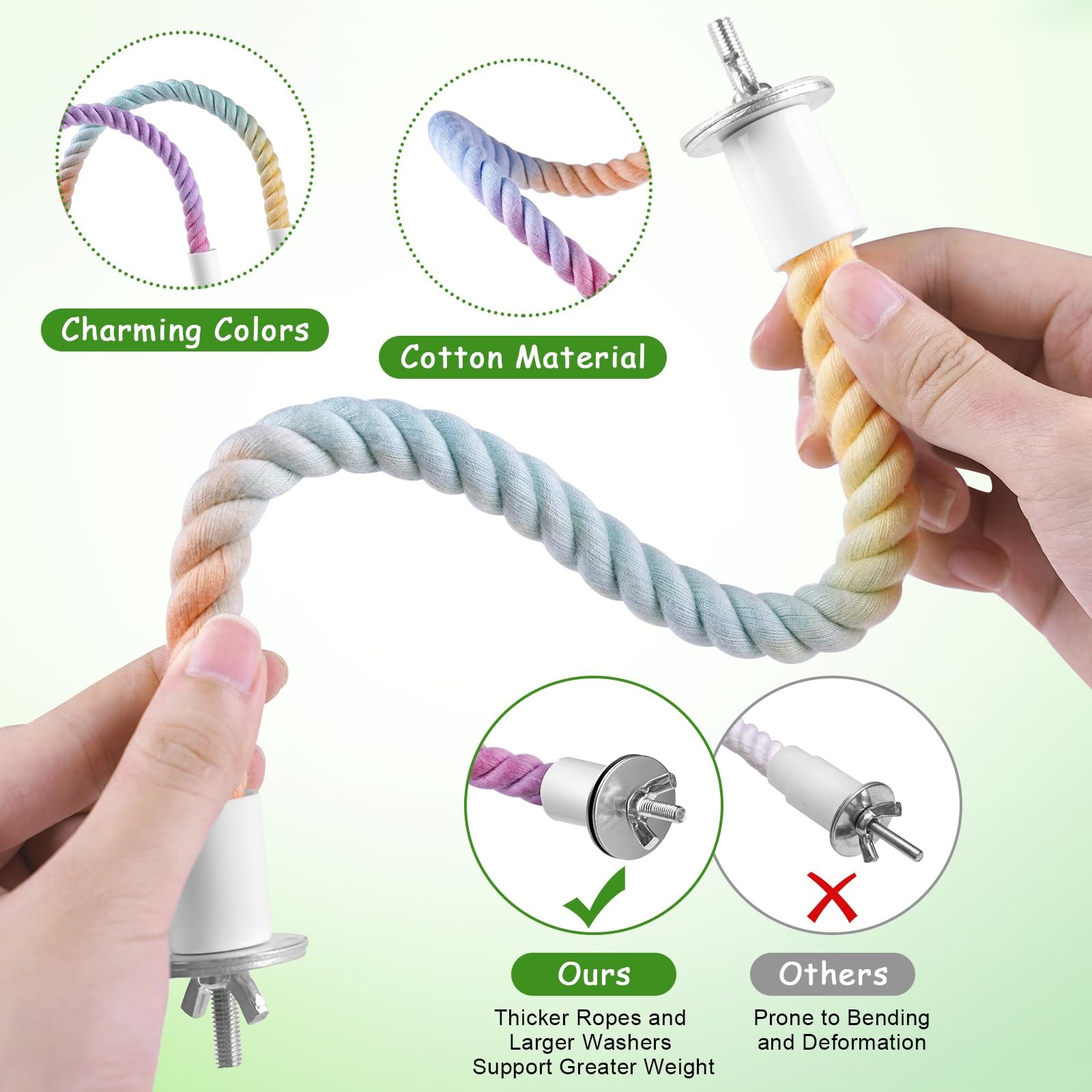 3 Pcs Bird Rope Perches Gradient Color, Bendable Parrot Bird Perch Rope Stand...
