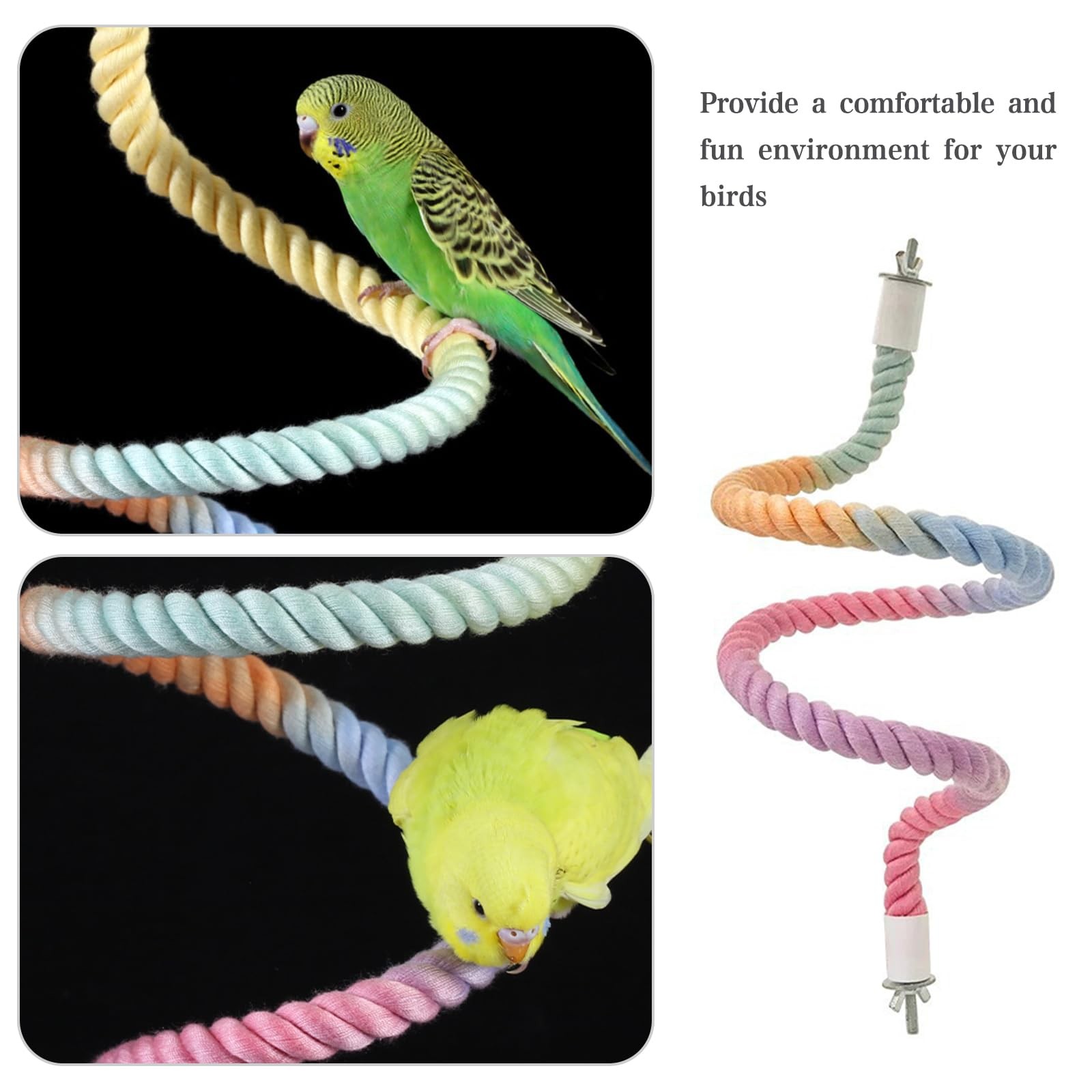 3pcs Gradient Colorful Bird Rope Perch Stand,Bird Cage Climbing Rope Toys Acc...