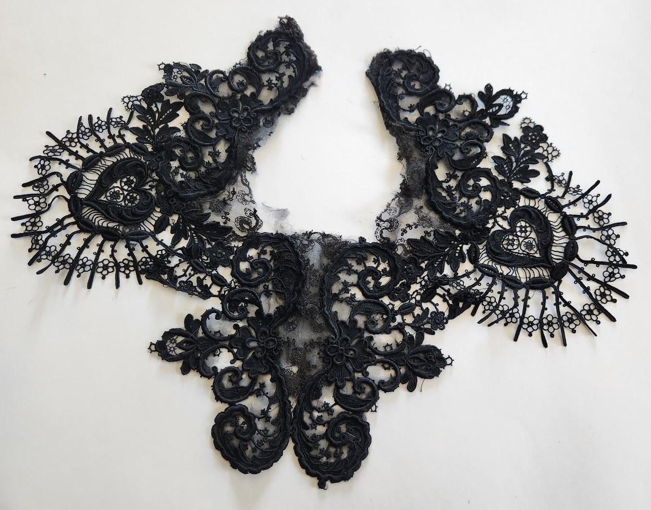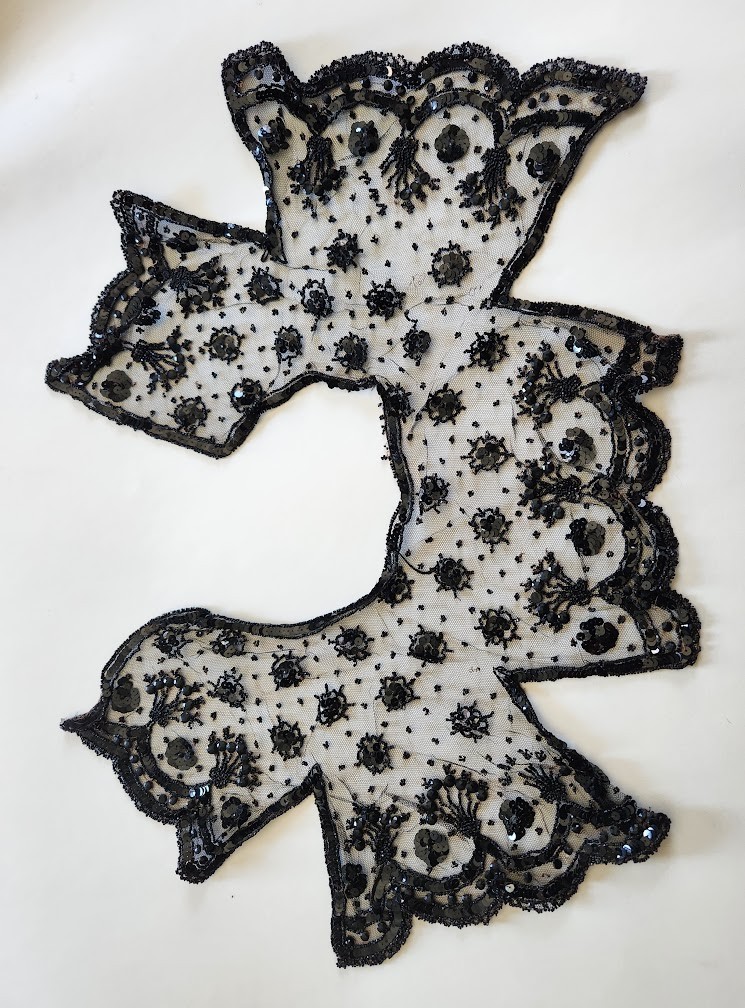 Vintage Antique Victorian Mourning Black Lace Collars Beads Sequins