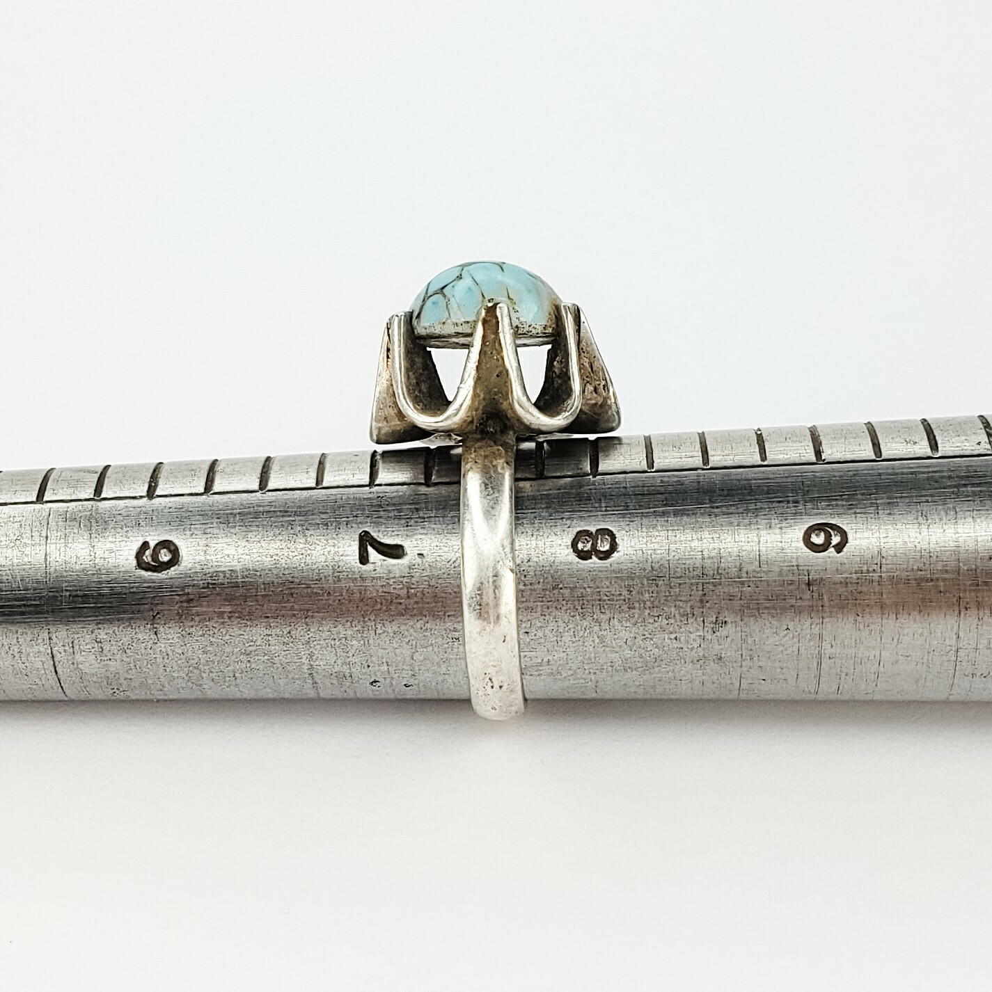 как выглядит Vintage Sterling Silver 925 Turquoise Cabochon Ring Size 7.5 фото