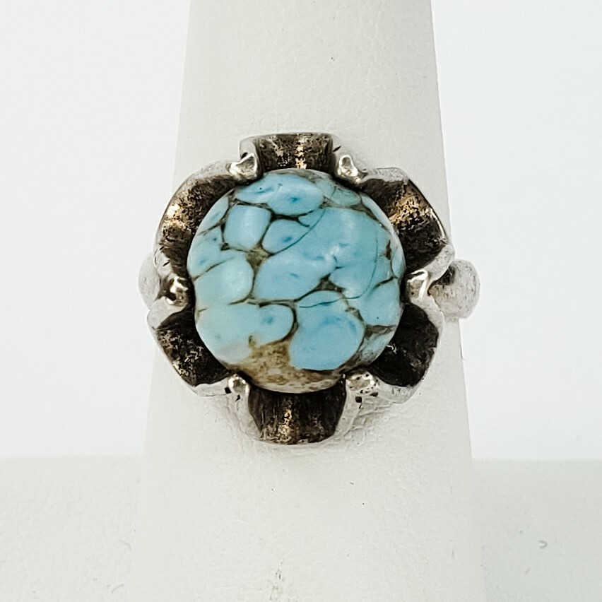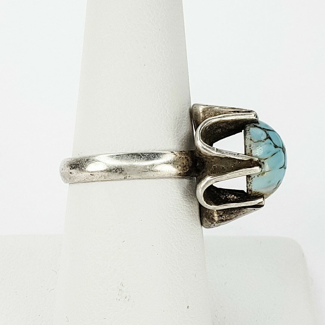 Vintage Sterling Silver 925 Turquoise Cabochon Ring Size 7.5