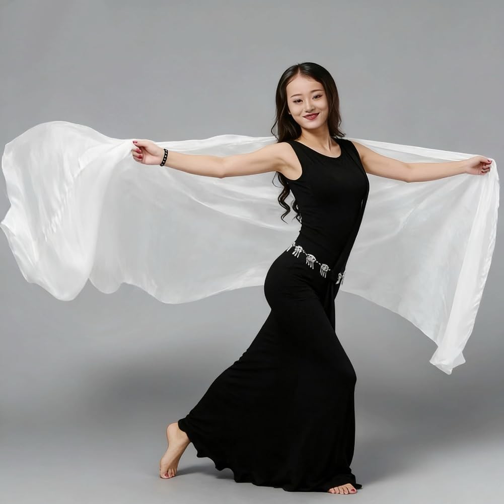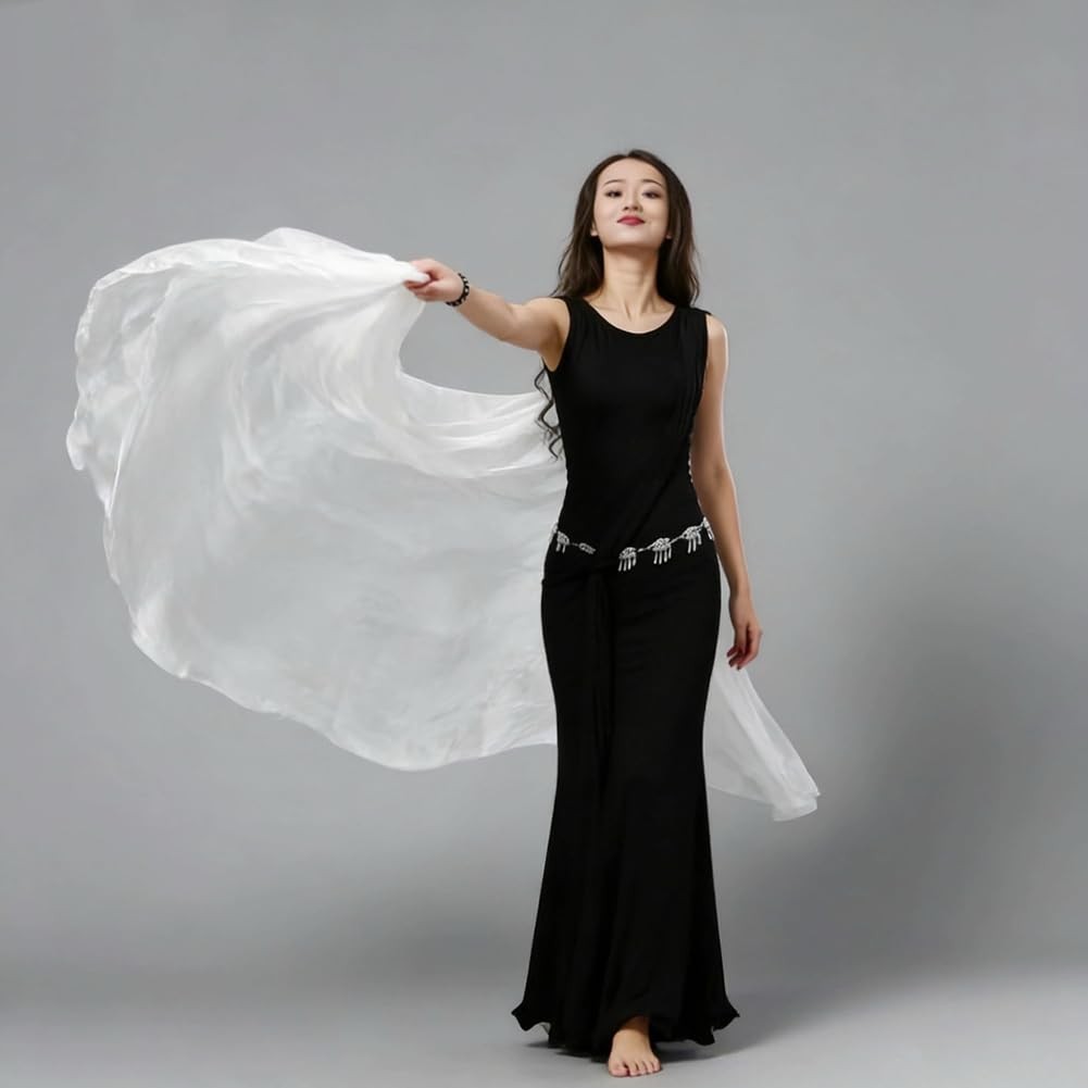 Real Veils Light Silk Belly Dance Hand Veil Silk 250x114cm Stage Performance