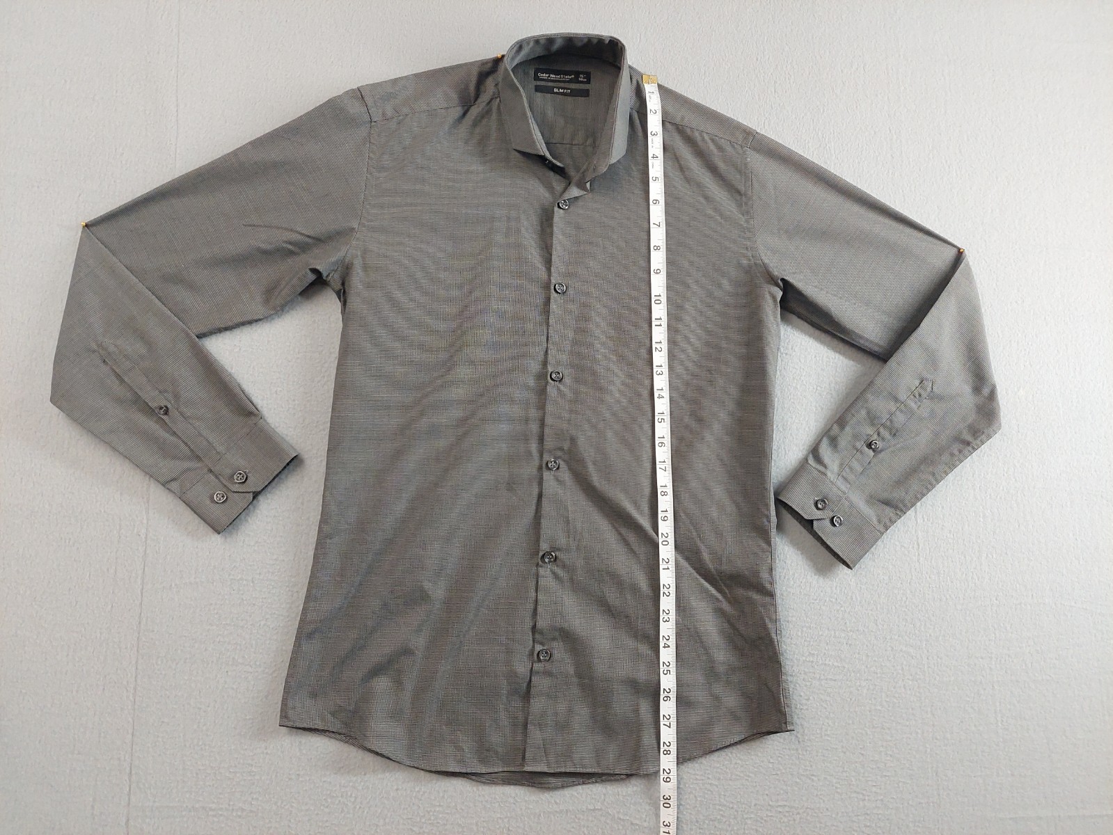 как выглядит Cedar Wood State Men Dress Shirt 15 Gray Long Sleeve Slim Fit Collared Formal фото