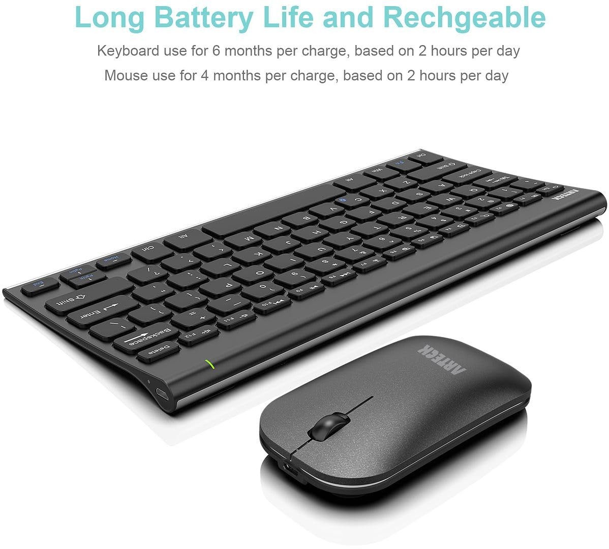 Bluetooth Keyboard and Mouse Combo Ultra Compact Slim Stainless Full Size Key...