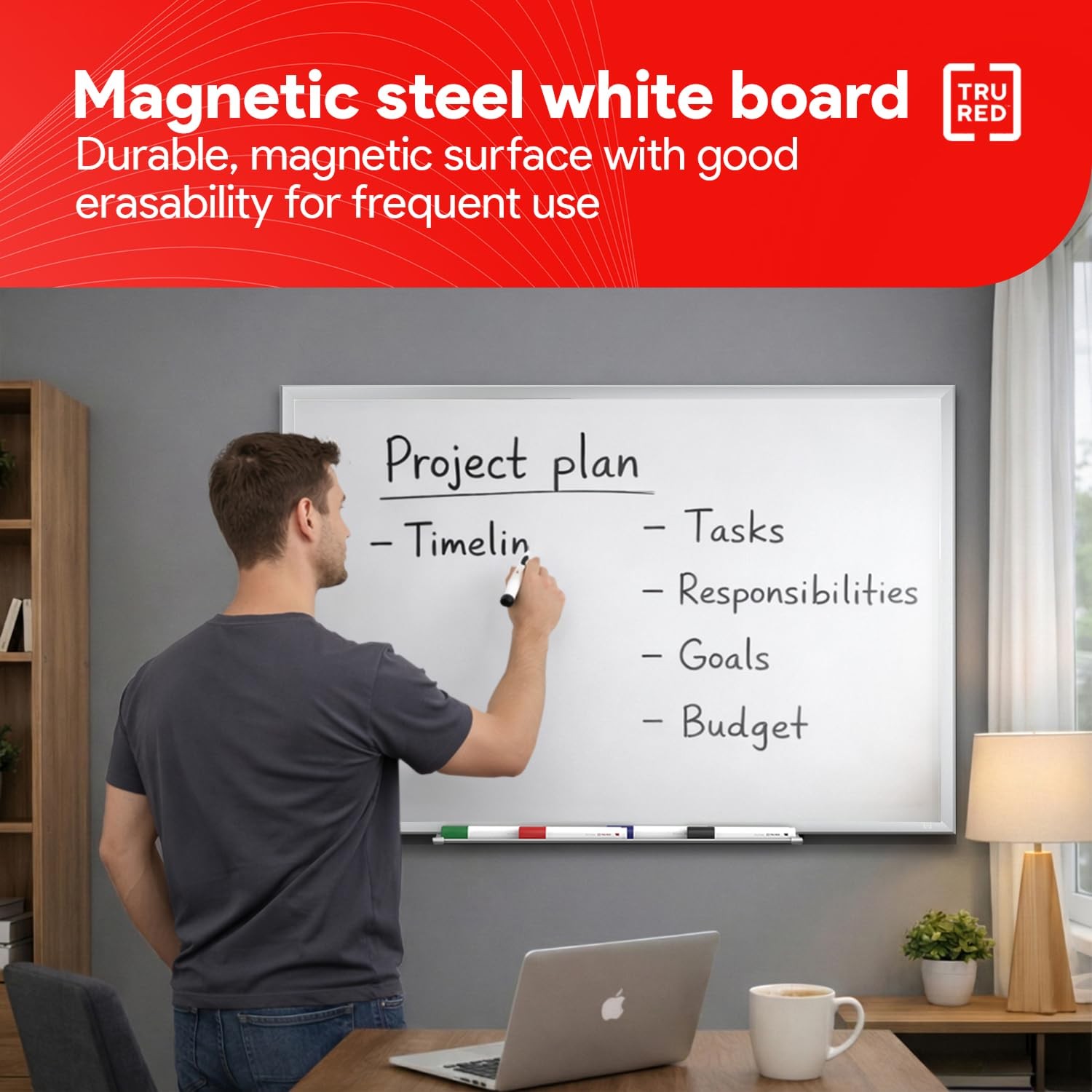 как выглядит Magnetic Steel Dry Erase Whiteboard with Satin Finish Aluminum Frame, 3 x 2 f... фото