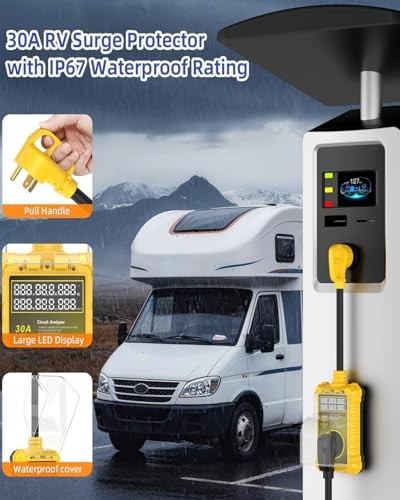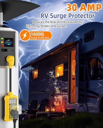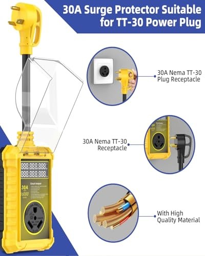 RV Surge Protector 30 Amp 16000J, IP67 Waterproof LED Real-Time 30A yellow