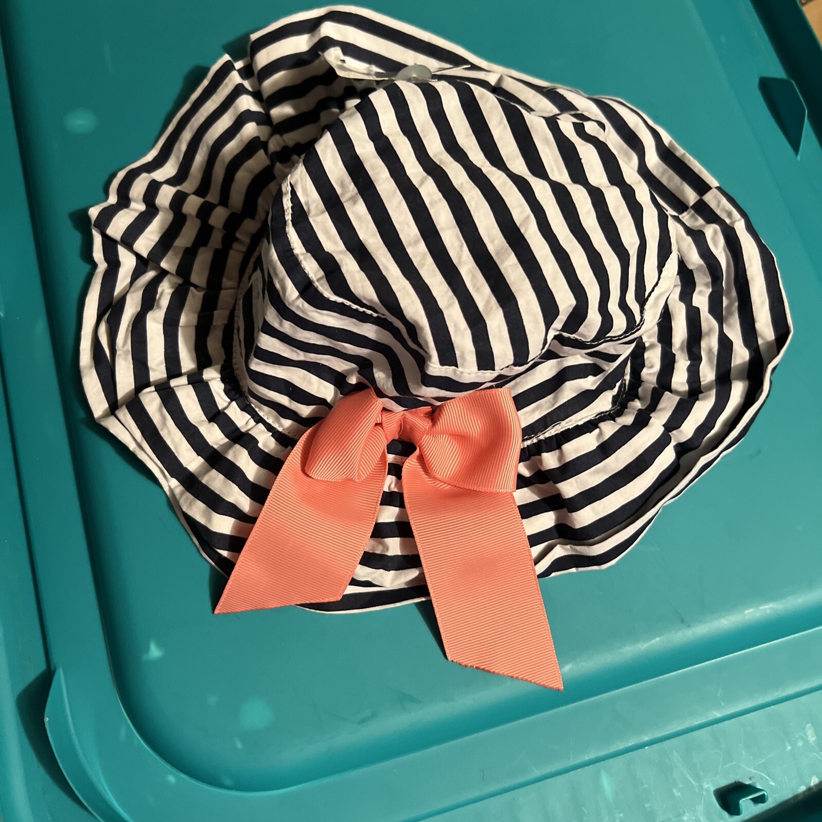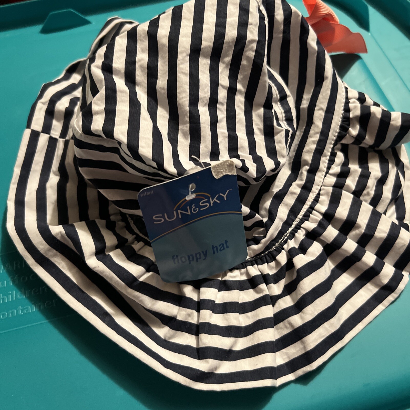 как выглядит SUN SKY INFANT STRIPED FLOPPY HAT 19.25 " BLACK AND WHITE WITH BOW NEW фото