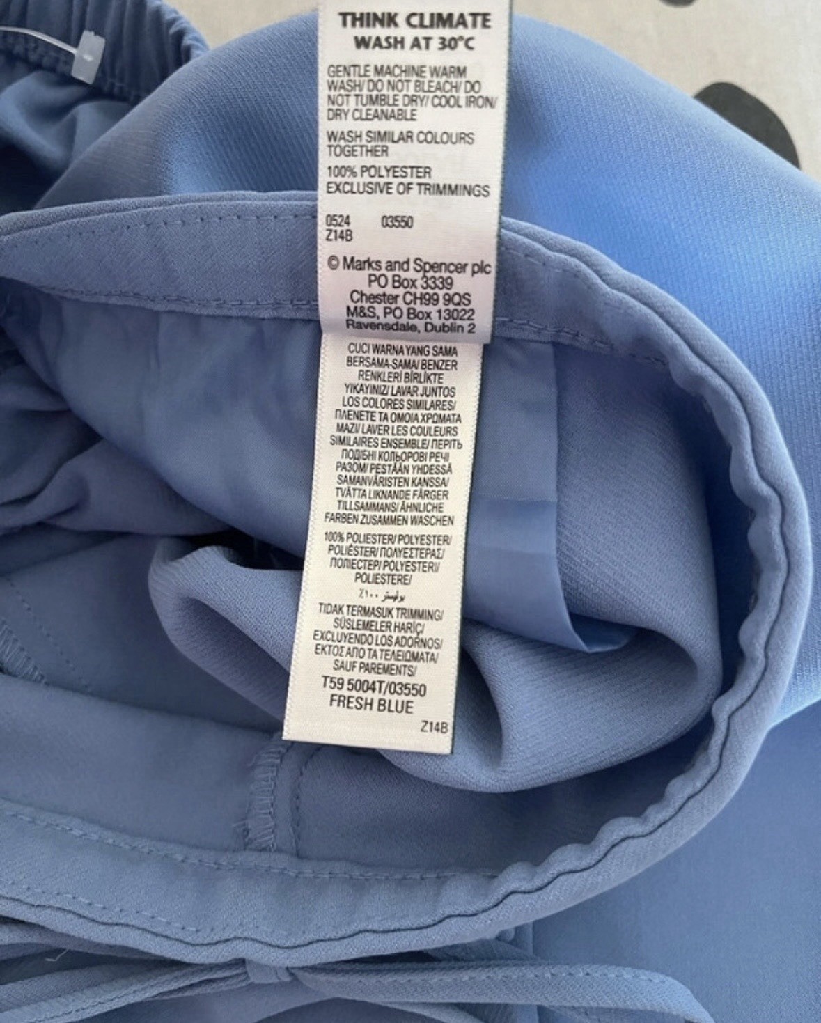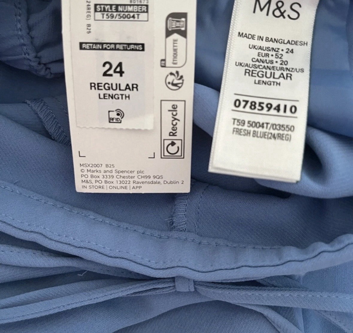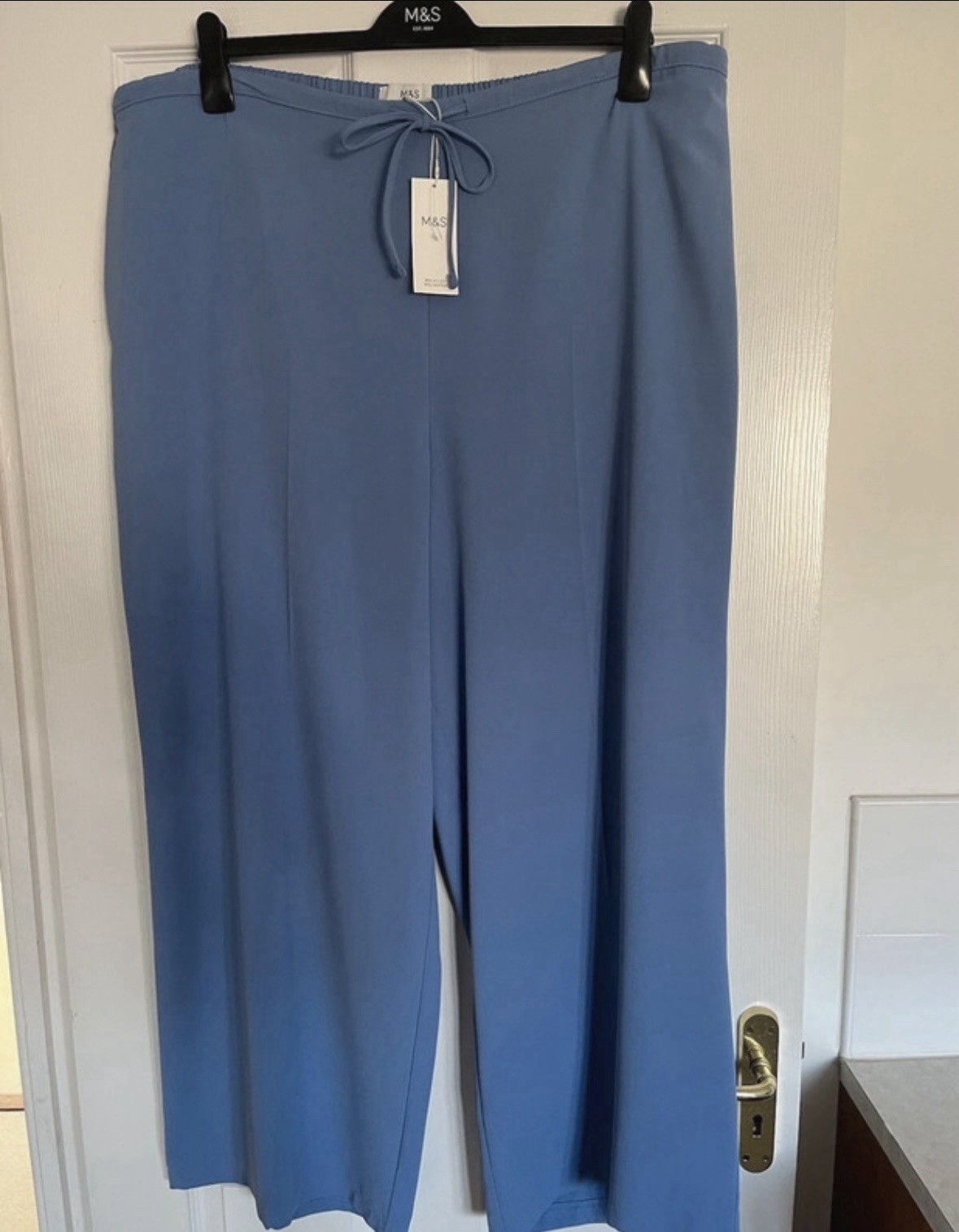 как выглядит MARKS SPENCER WOMENS PASTEL BLUE WIDE LEG CREPE TROUSERS Size 24 Bnwt фото