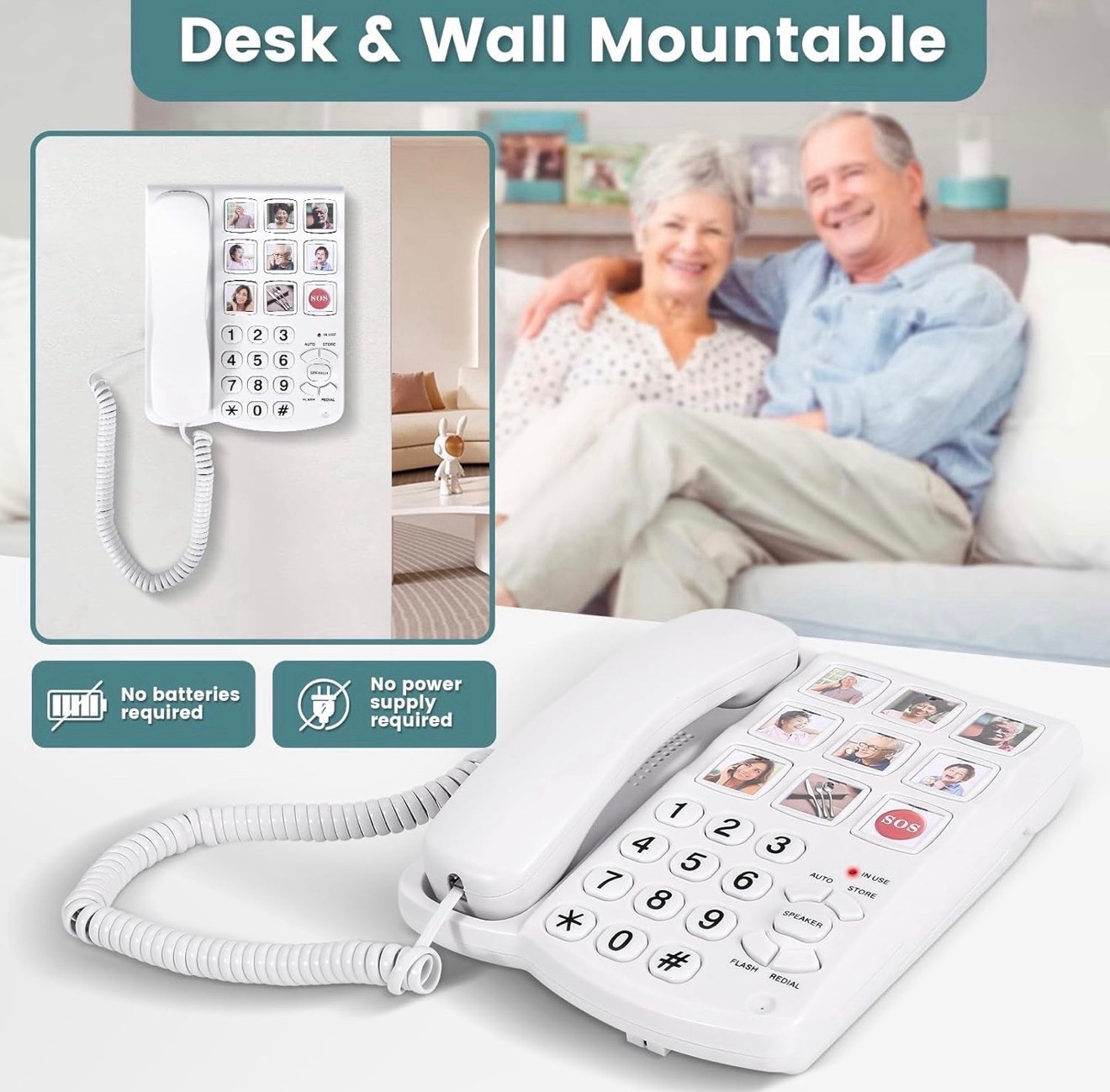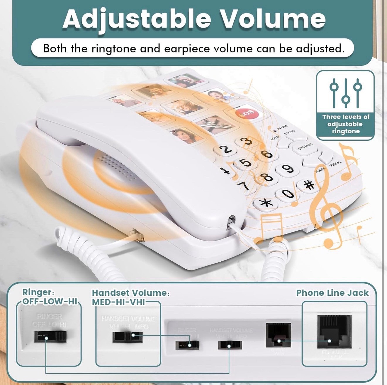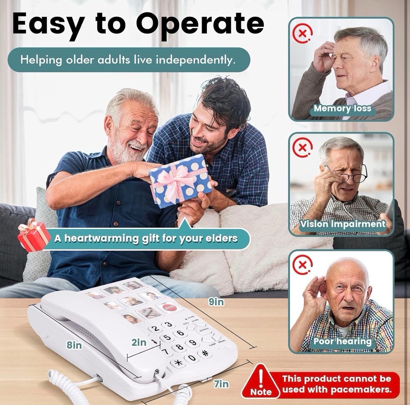 Landline Phones for Seniors - Corded Home Phone for Seniors 9 Big Photo Buttons