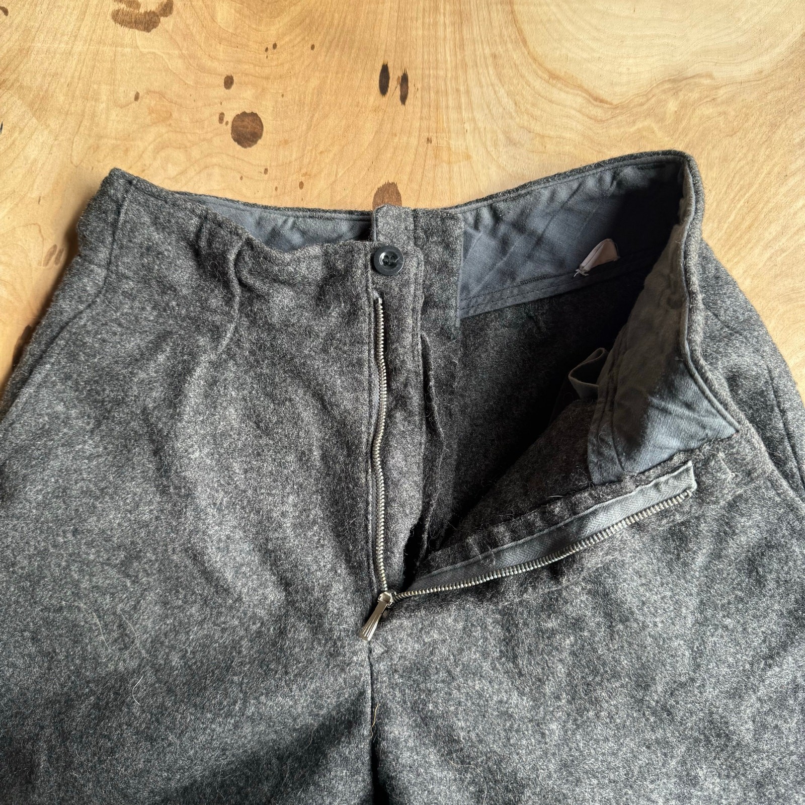 True Vintage 1940s Women's Gray Wool Zipper Fly Wide Leg Winter Pants 29x29