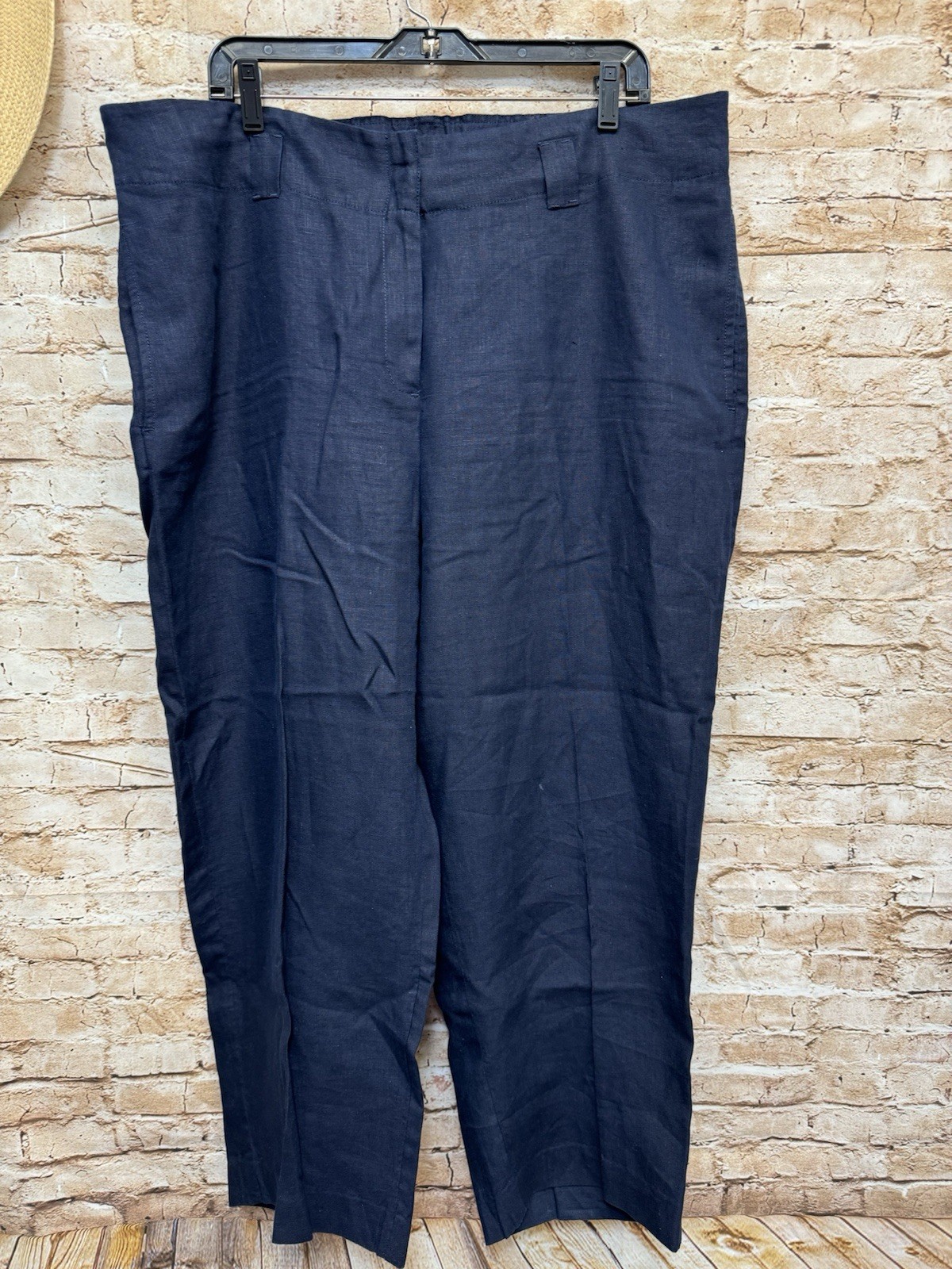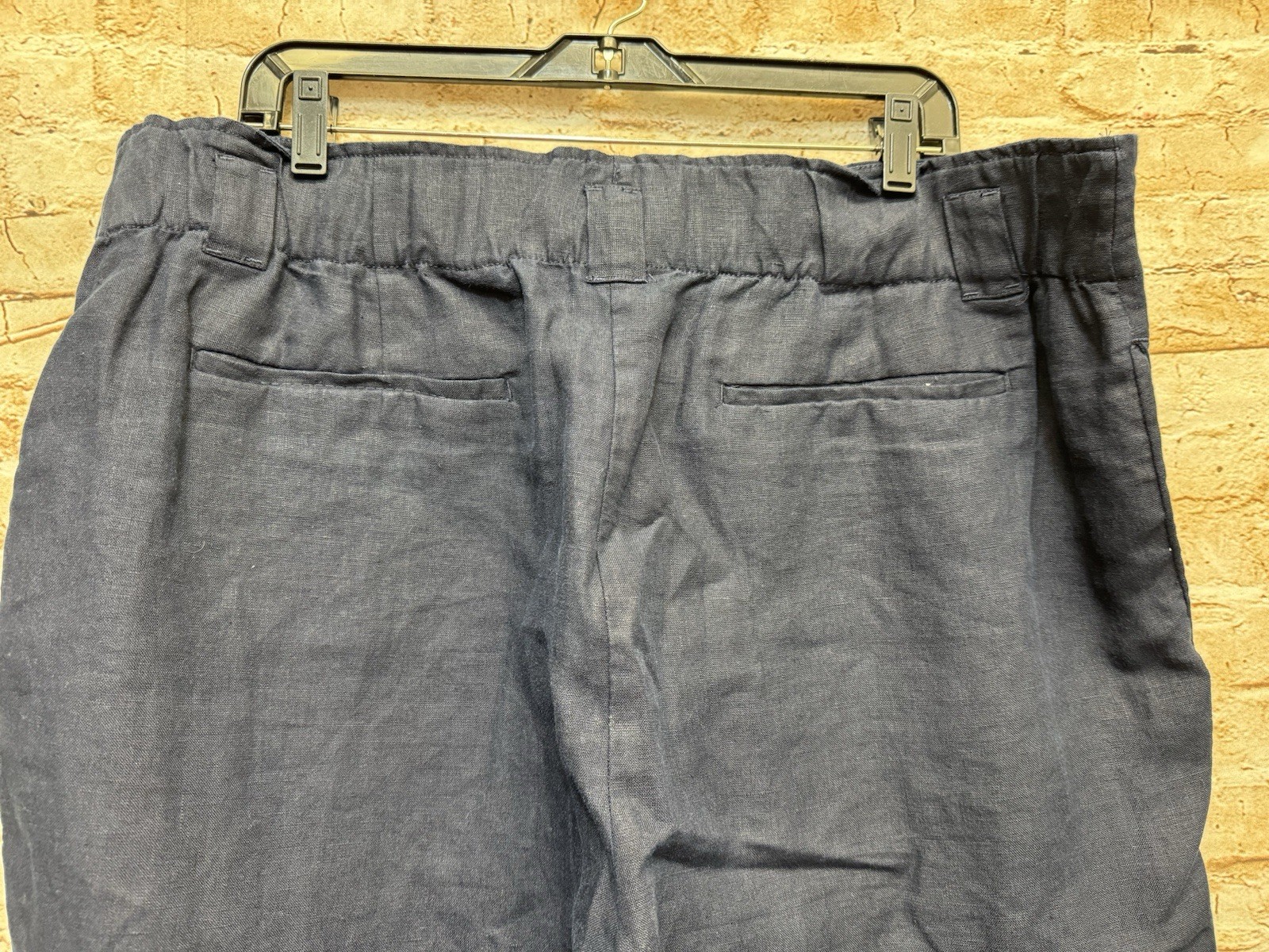 Chicos Navy Blue Linen Wide Leg Cropped Pants Size 3.5 18 XL
