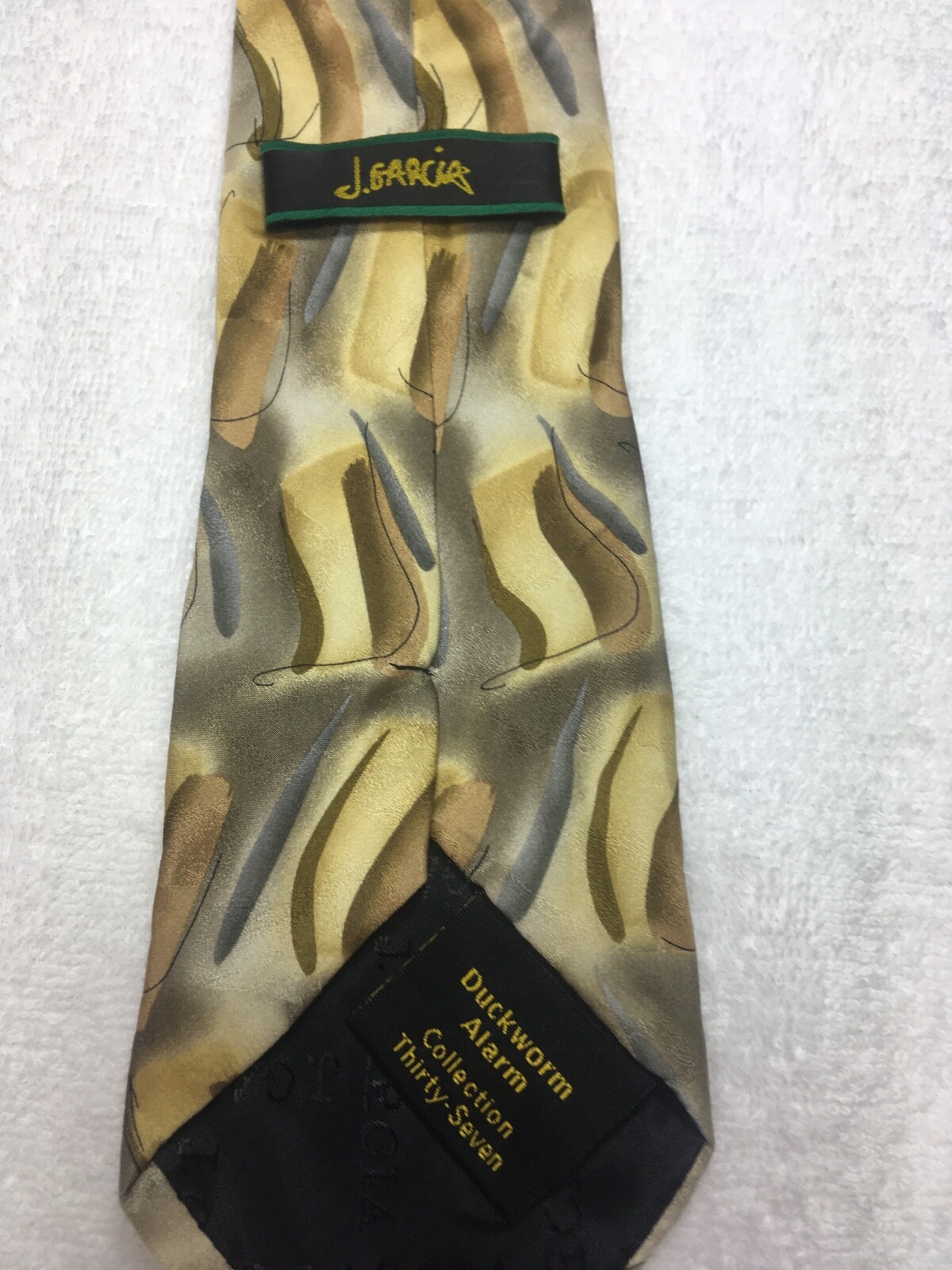J GARCIA MENS TIE YELLOW GOLD GRAY DUCKWORM ALARM 3.75 X 61