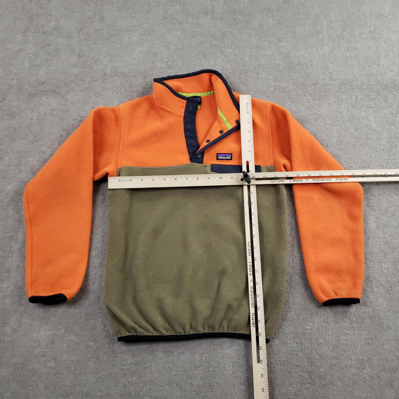 как выглядит Patagonia Synchilla Jacket Boys Large Orange Green Fleece Pullover Snap STY65571 фото