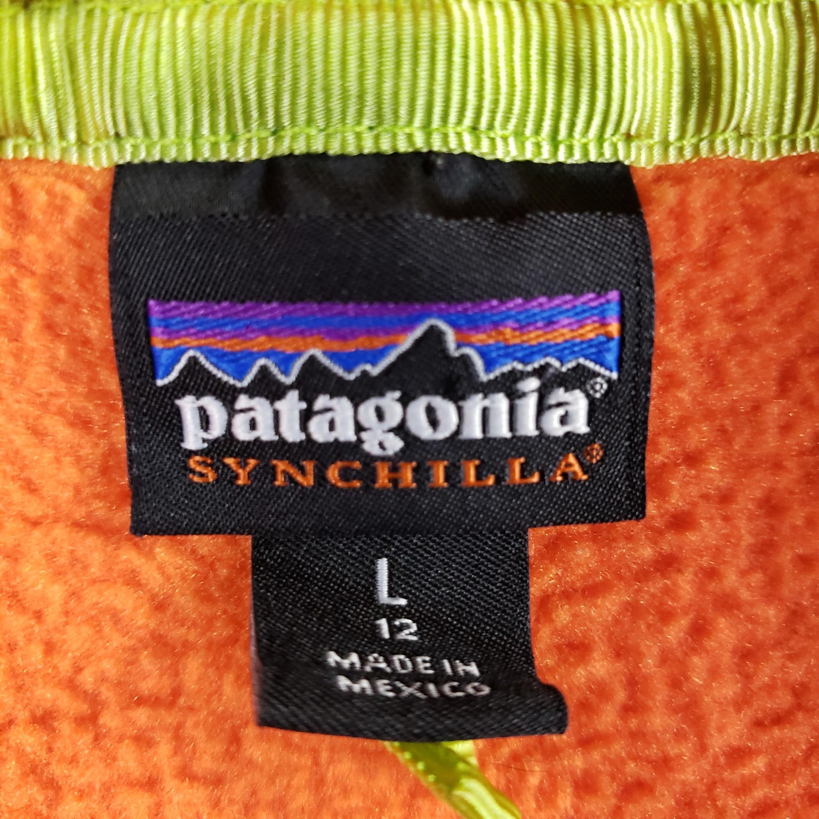 Patagonia Synchilla Jacket Boys Large Orange Green Fleece Pullover Snap STY65571
