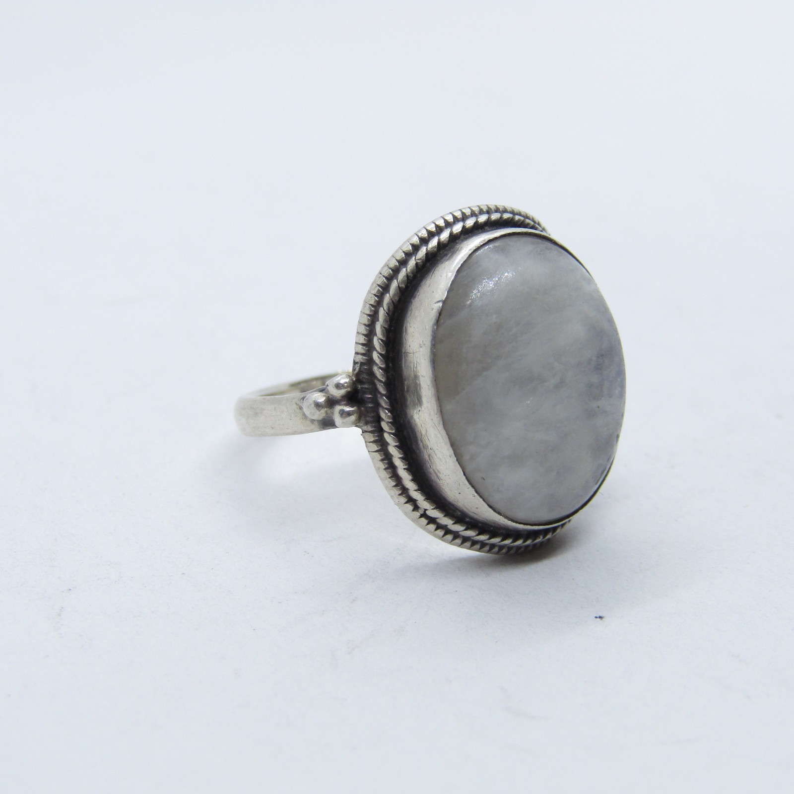 Vintage Sterling Silver 925 Rainbow Moonstone Ring Size 7.5 K7980