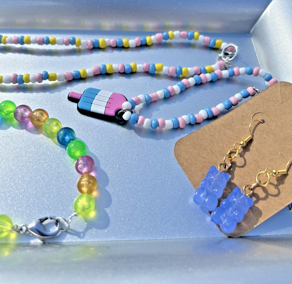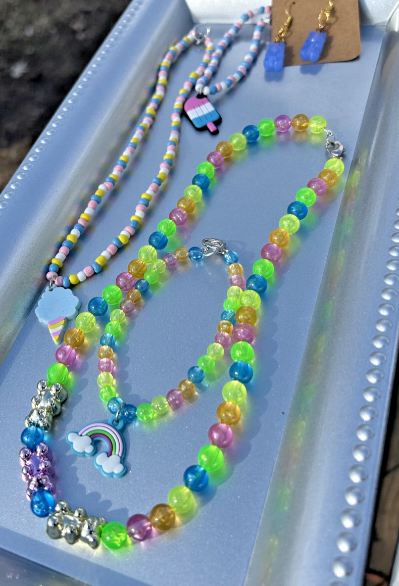 5 PIECES Candyland Girls Costume Jewelry Set. 2 bracelets 2 necklaces 1 earring