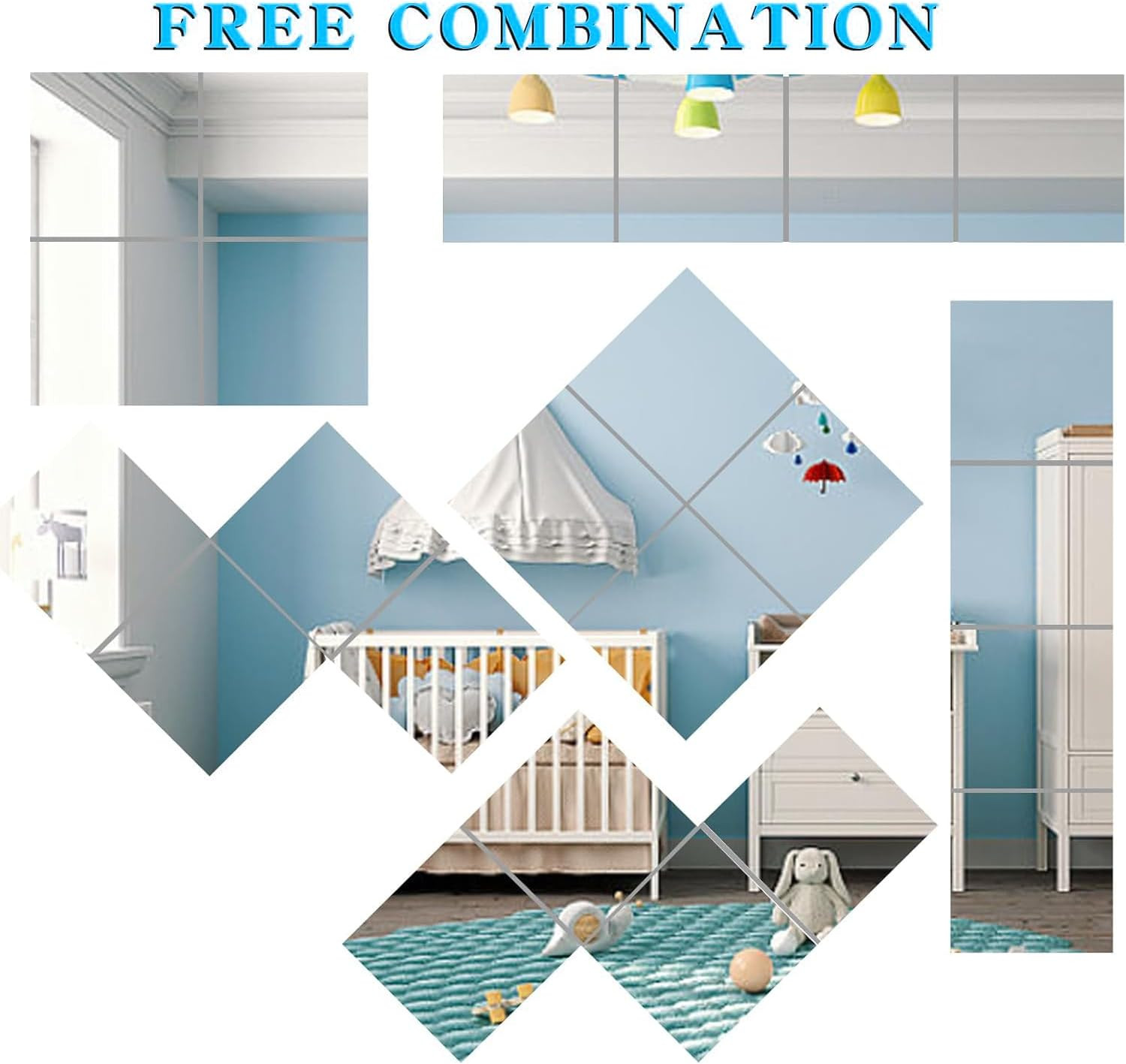 4-Piece Thick Acrylic Mirror Set for Walls, 12 x 12 inch self-Adhesive Frameless