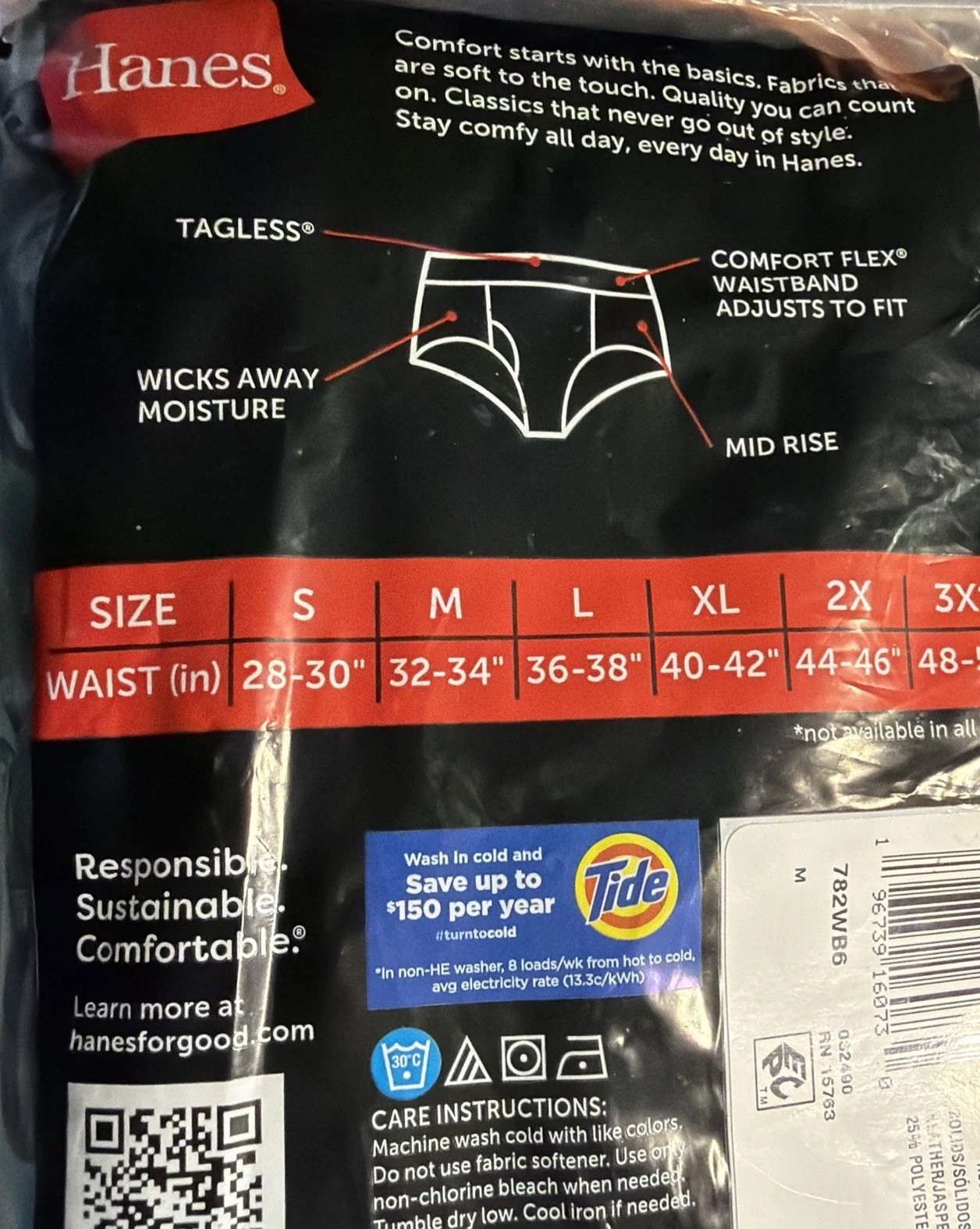как выглядит HANES 6 Pack Mens Tagless Briefs 32-34 Multi Color фото