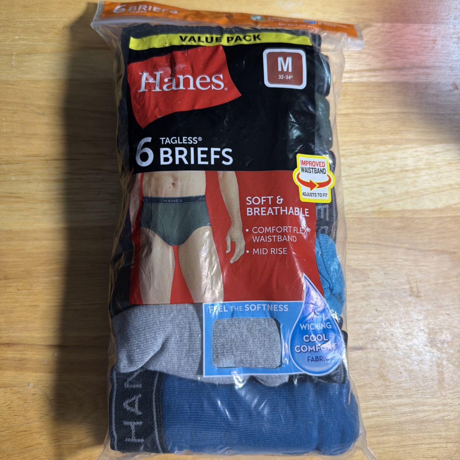 HANES 6 Pack Men's Tagless Briefs 32-34 Multi Color