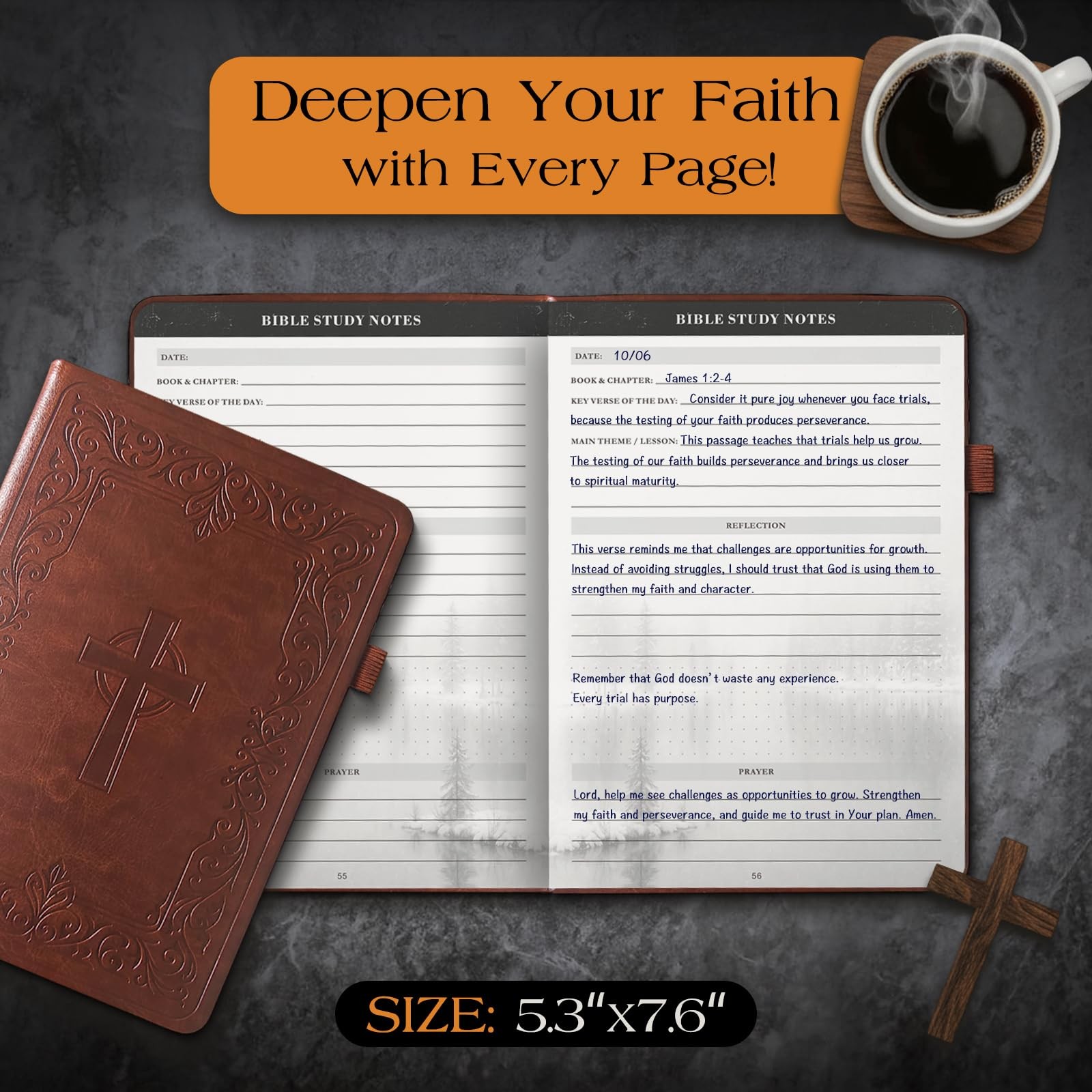 как выглядит Christian Bible Journal for Men  Premium Eco-Leather Undated Bible Study Not... фото