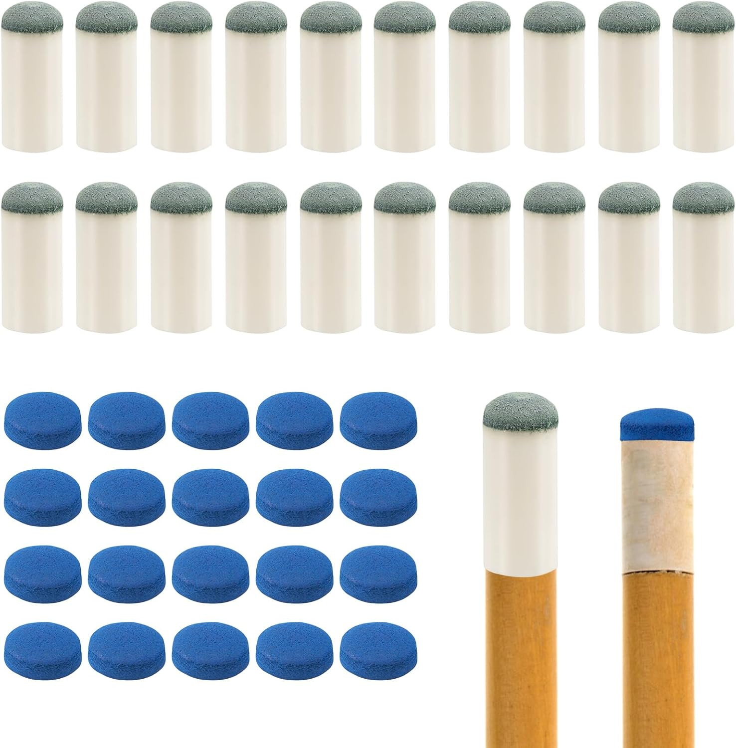 20Pcs Slip on Pool Cue Tips and 20 Leather Pool Cue Tips, 0.47 Inch Pool Cue Sti