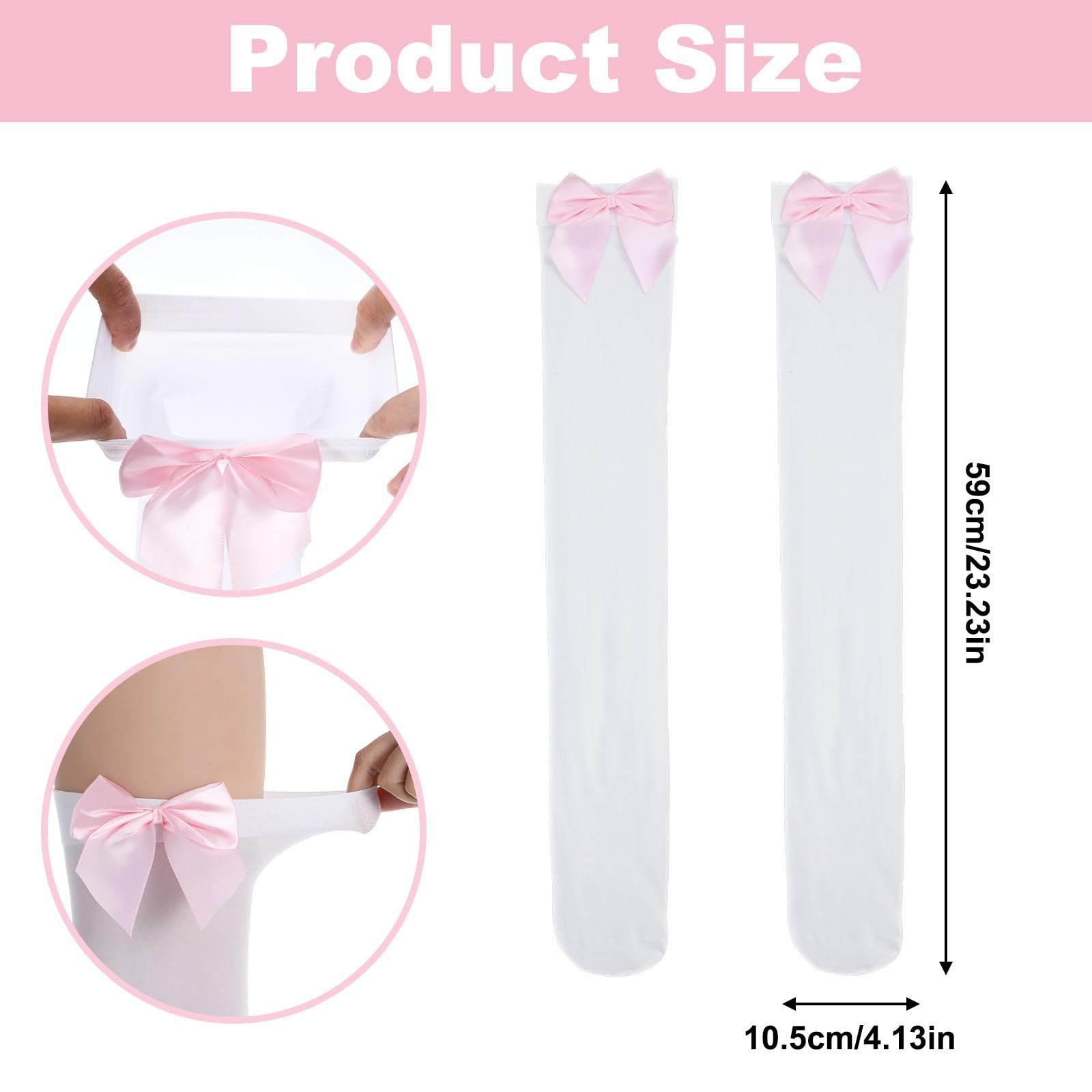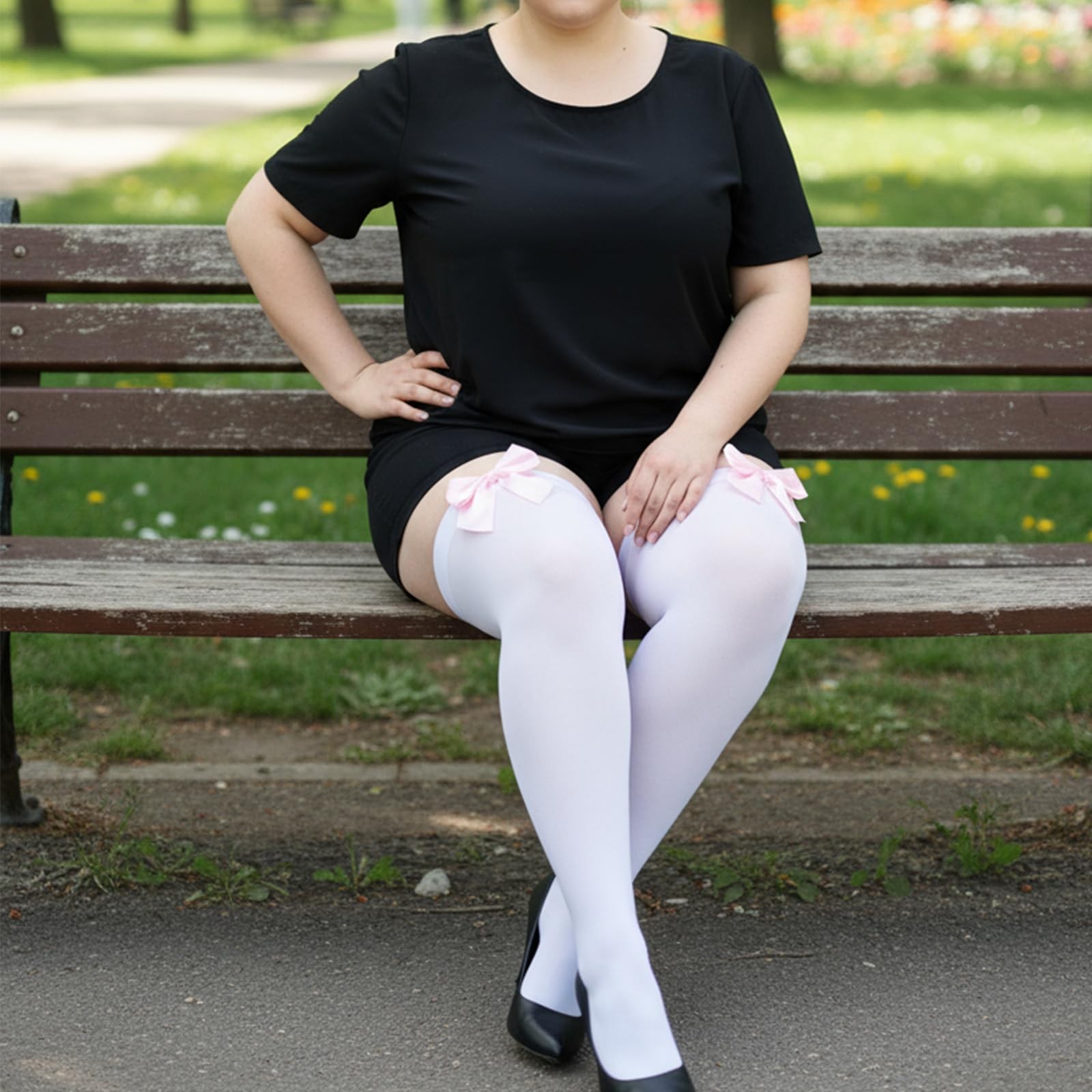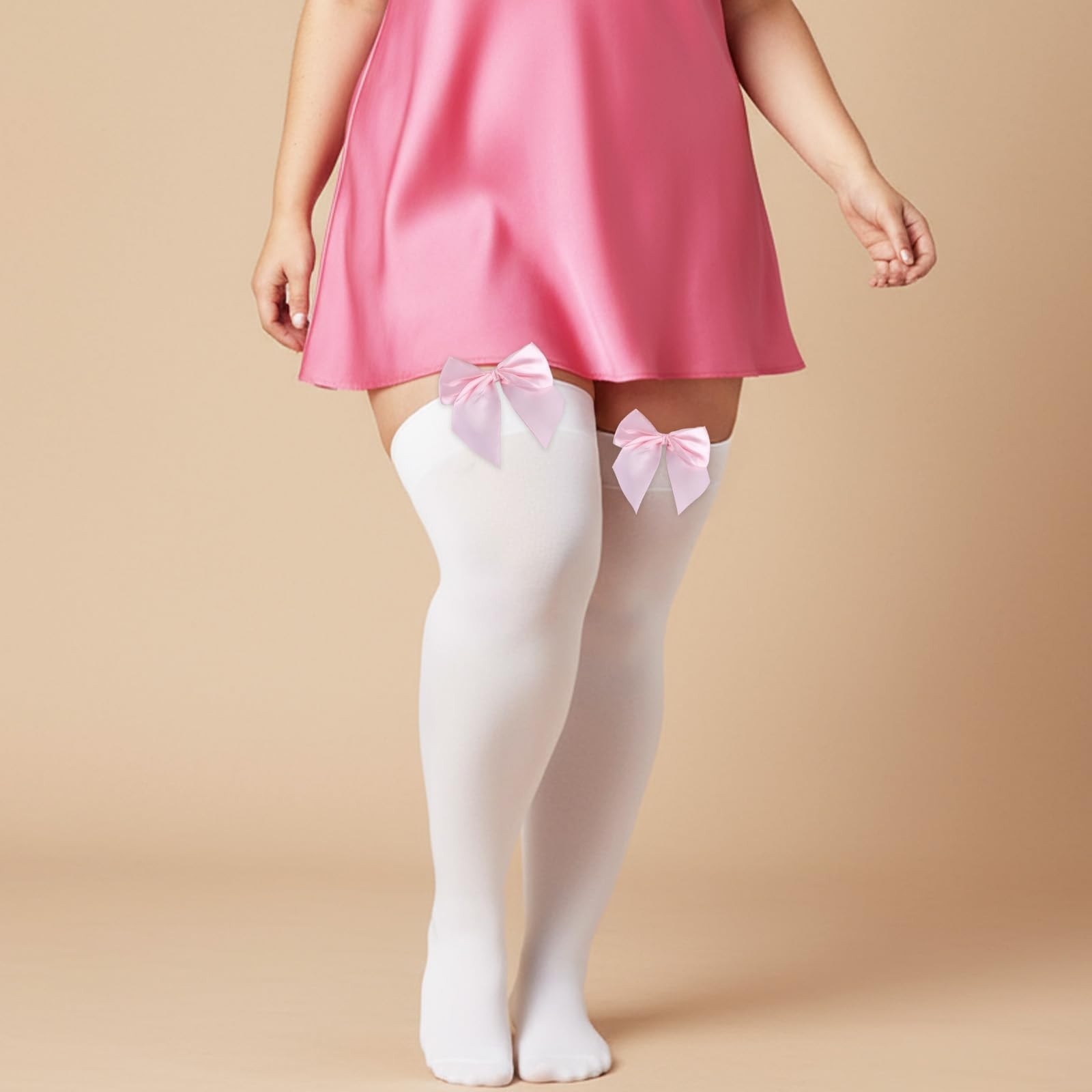 Prasacco 2 Pairs Plus Size Thigh High Stockings, Women One Plus, White