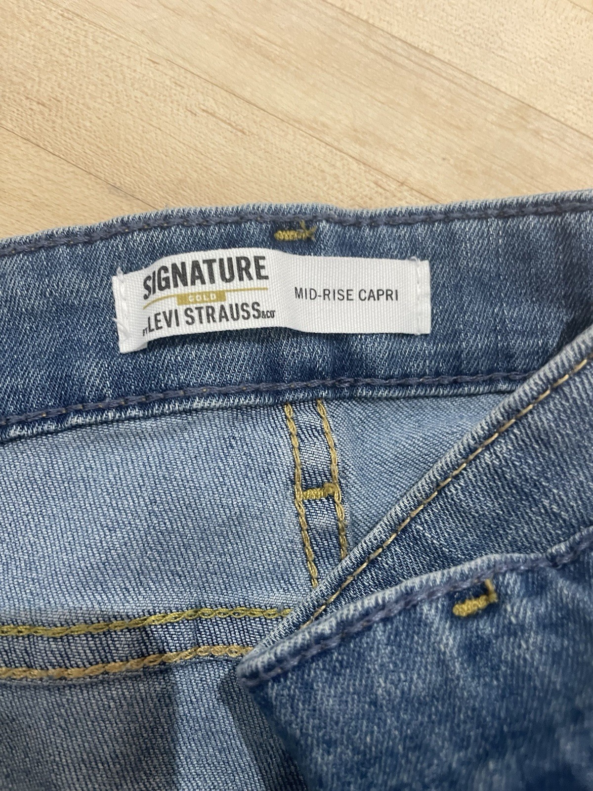 как выглядит Signature by Levi Strauss Jeans Women 20 Blue Denim Capri Mid-Rise Stretch Faded фото